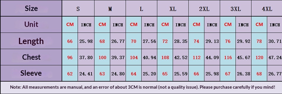 Sizes: S, M, L, XL, XXL, 3XL, 4XL