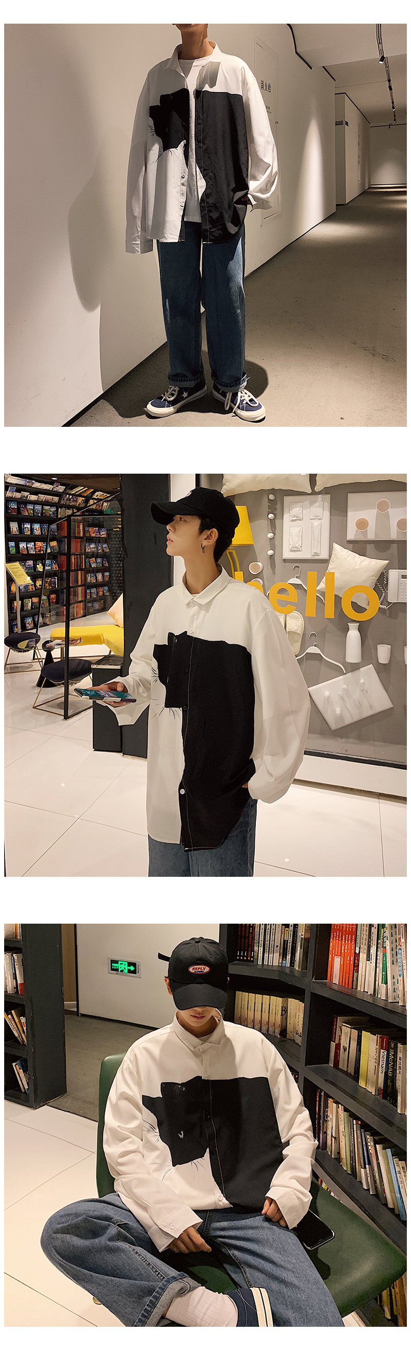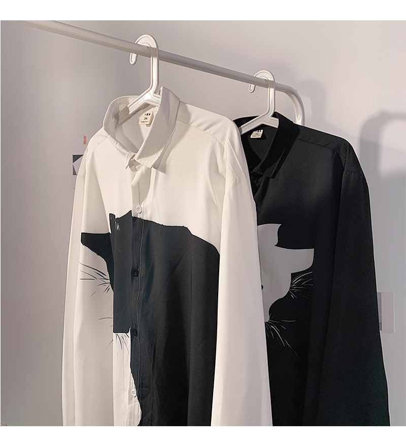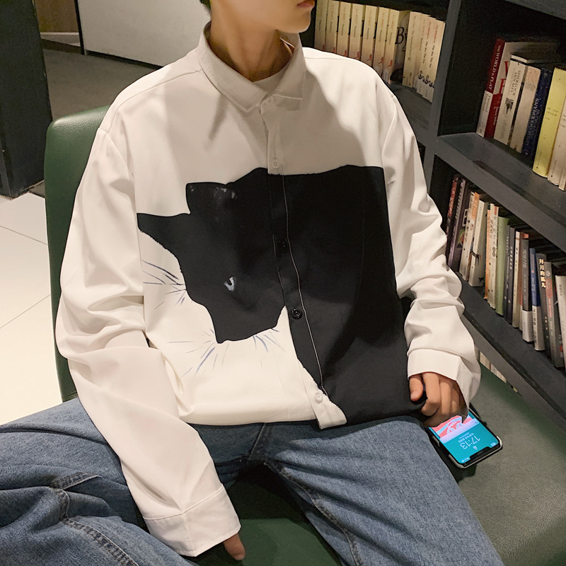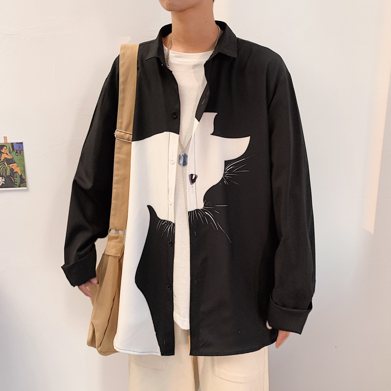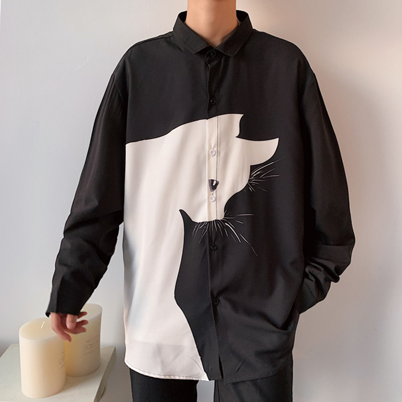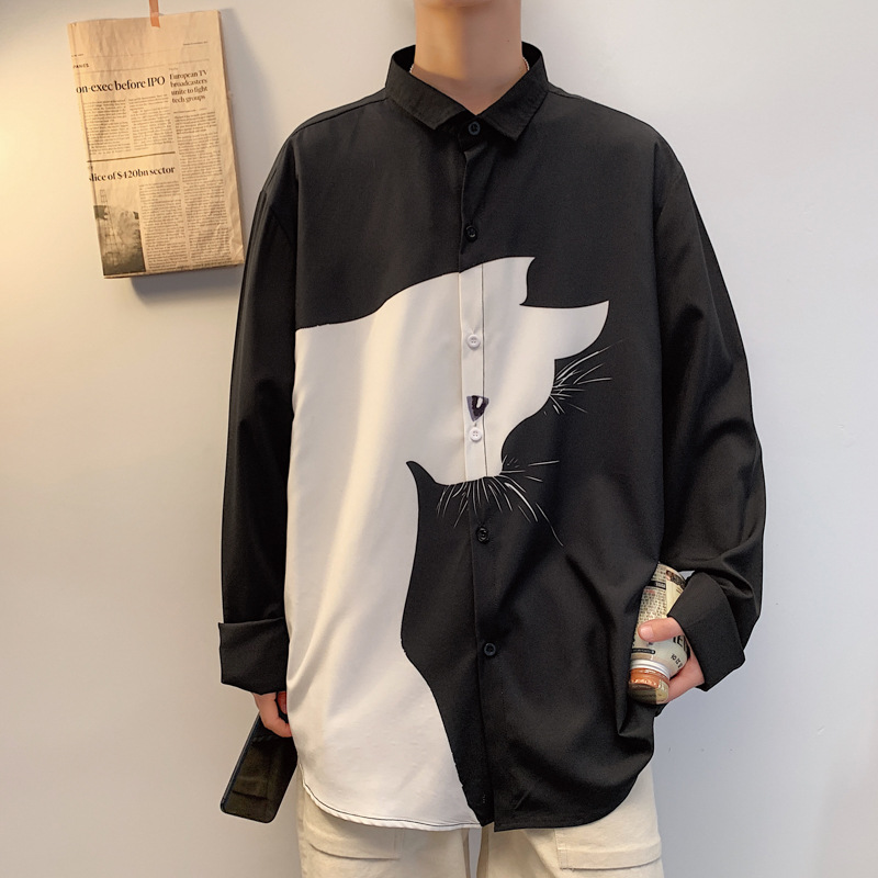 Men's Long Sleeve Loose Plus Size Casual Handsome Cartoon Stitching Shirt
