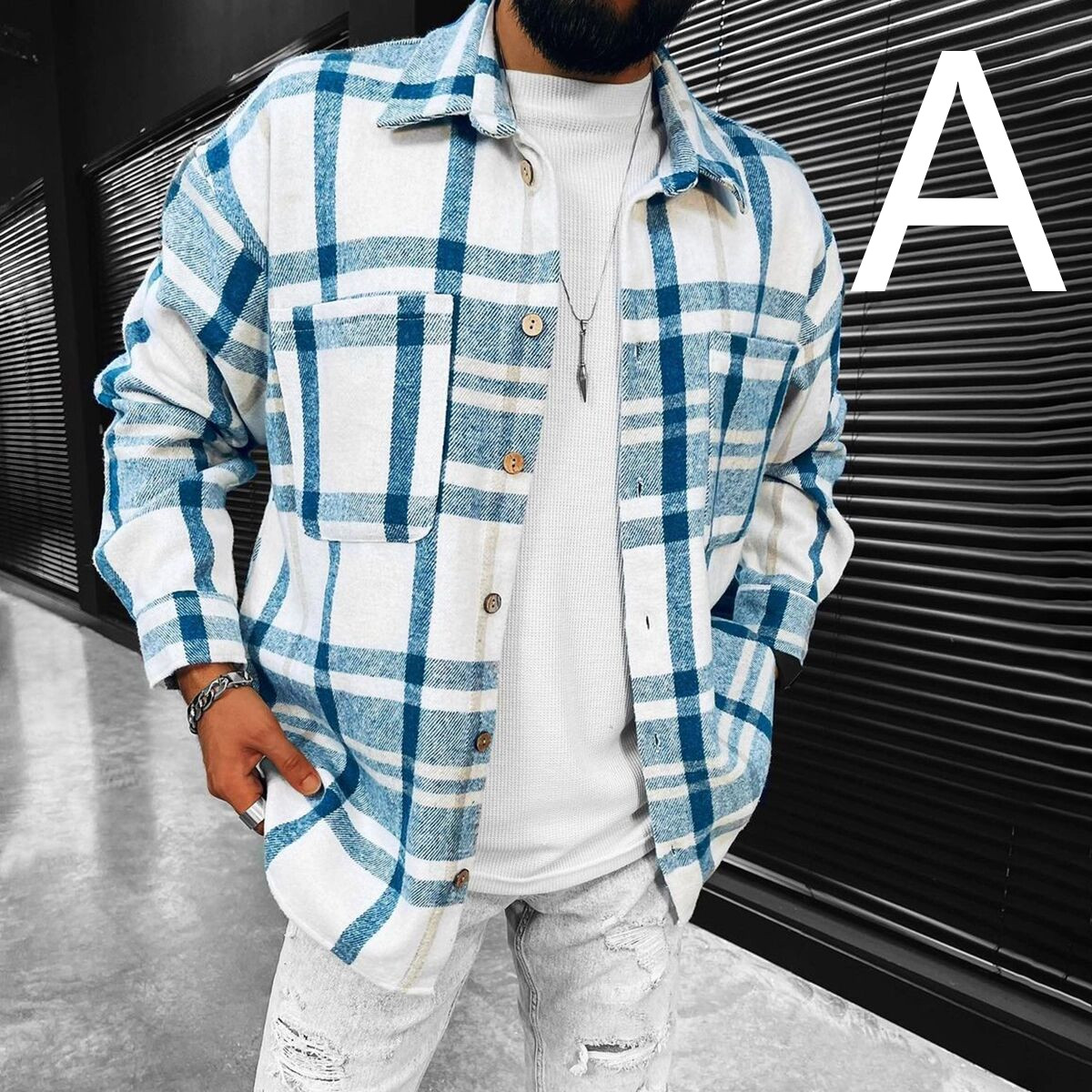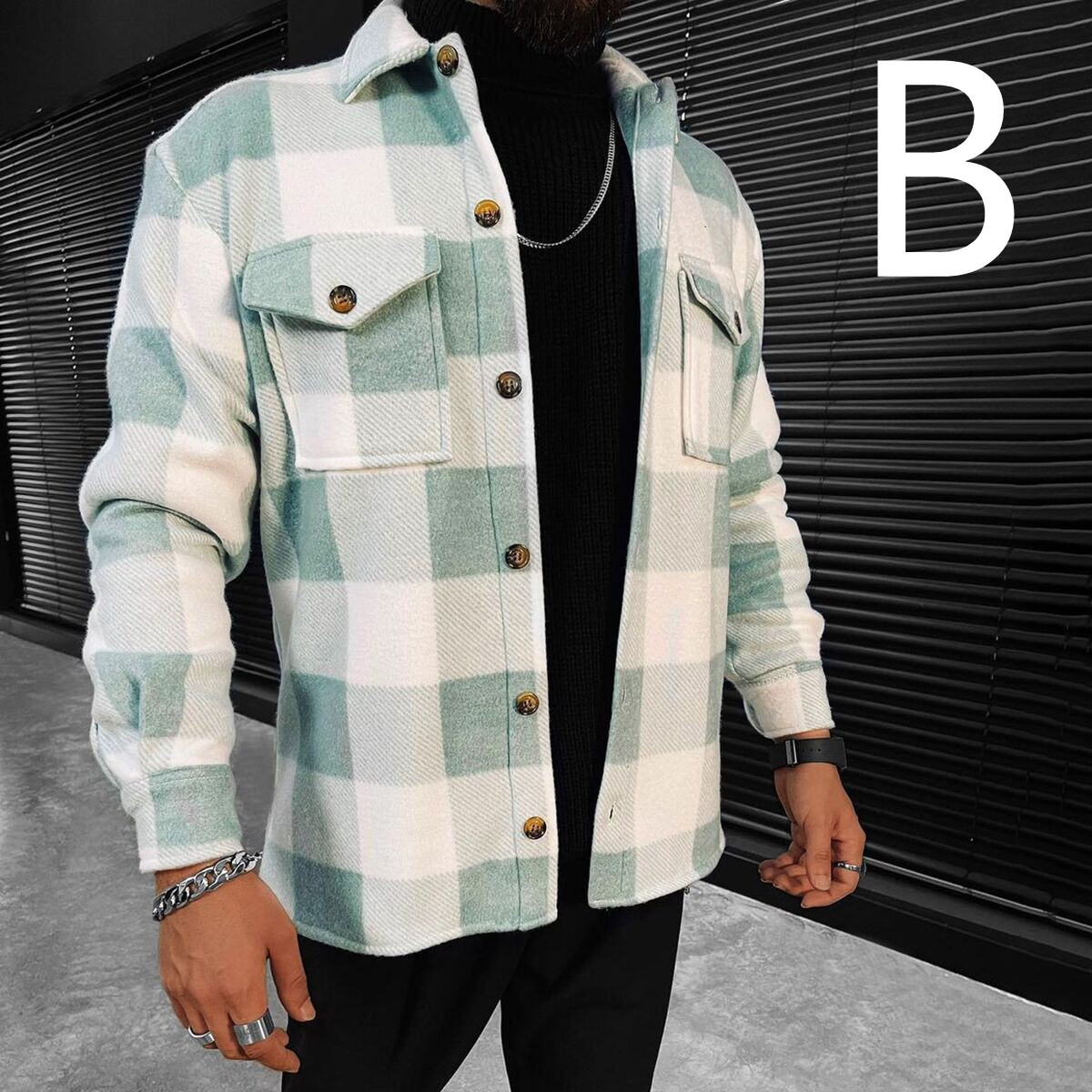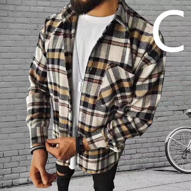 Men's Long Sleeve Plaid Shirt Jacket