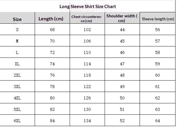 Sizes: S, M, L, XL, 2XL, 3XL, 4XL, 5XL, 6XL