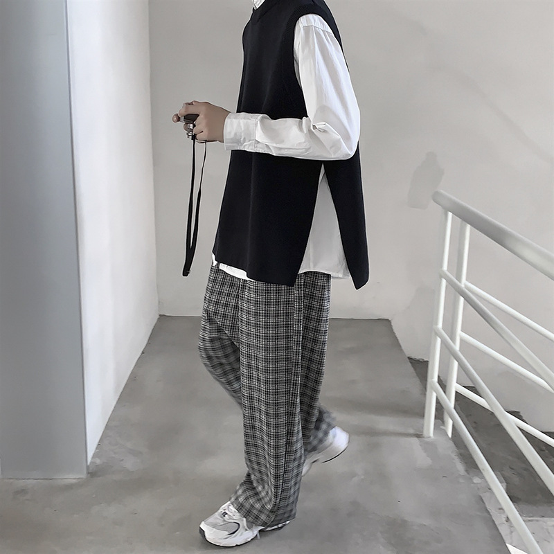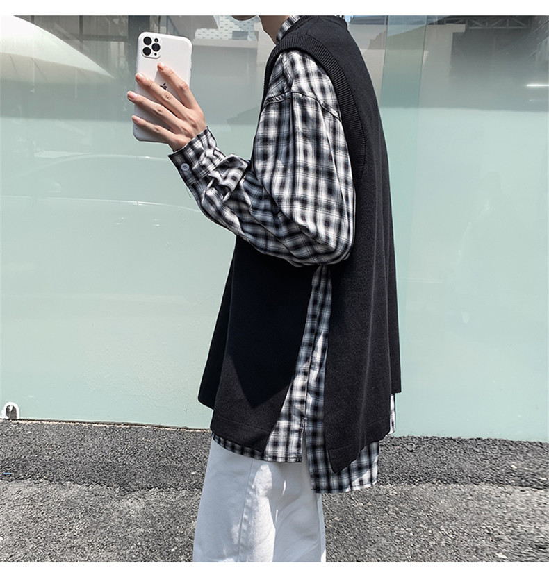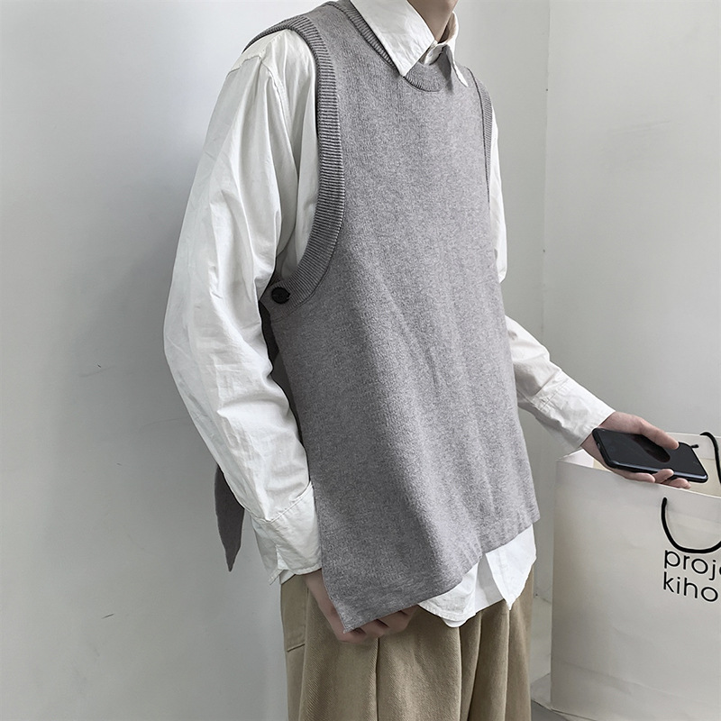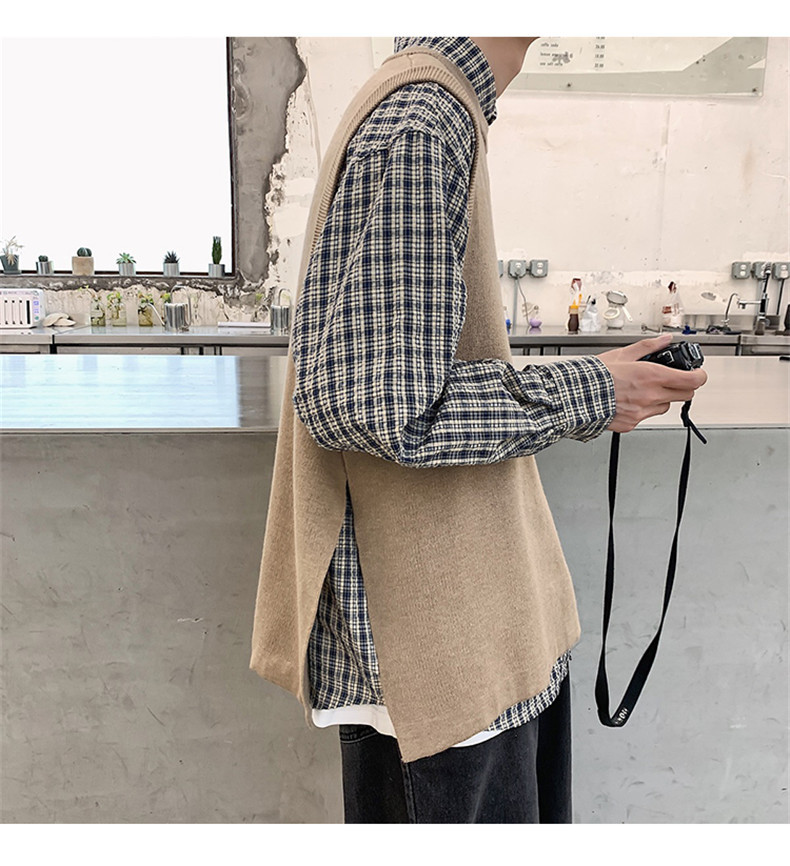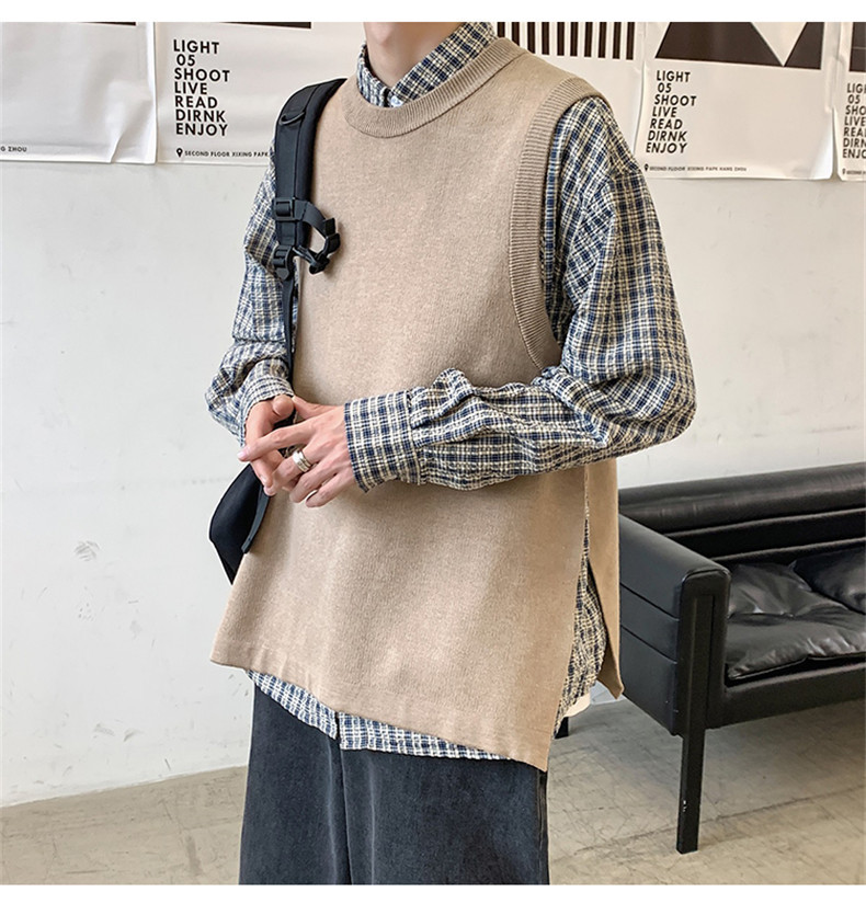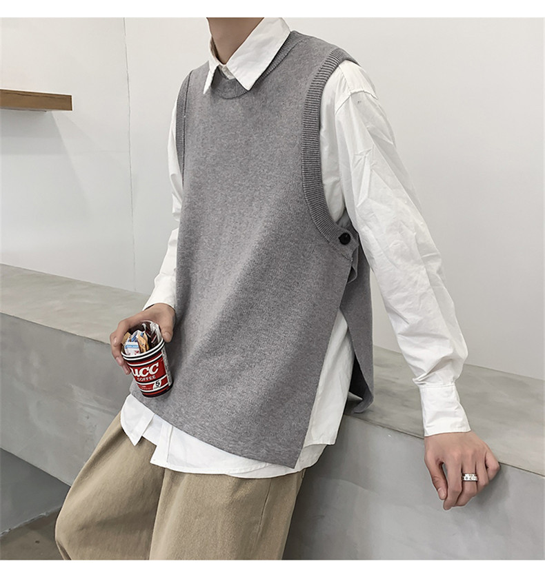 Men's Long Sleeve Slit Sweater With Sleeveless Vest