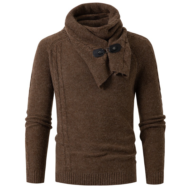 Men's Long-sleeved Scarf Detachable Slim Round Neck Pullover Knitted Sweater
