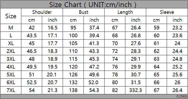 Size: M,L,XL,2XL,3XL,4XL,5XL,6XL,7XL