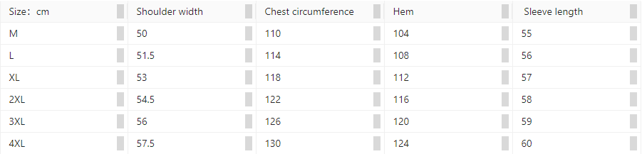 Size: M, L, XL, XXL, XXXL, XXXXL, XXXXL