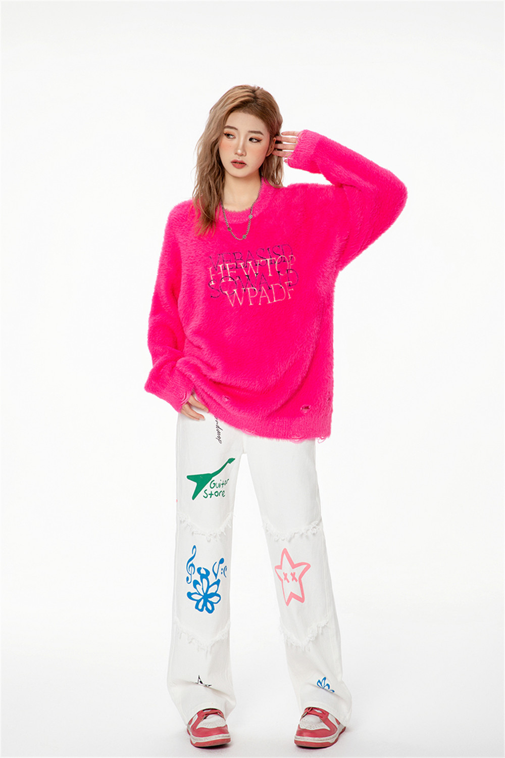 Color: white, pink, green, black