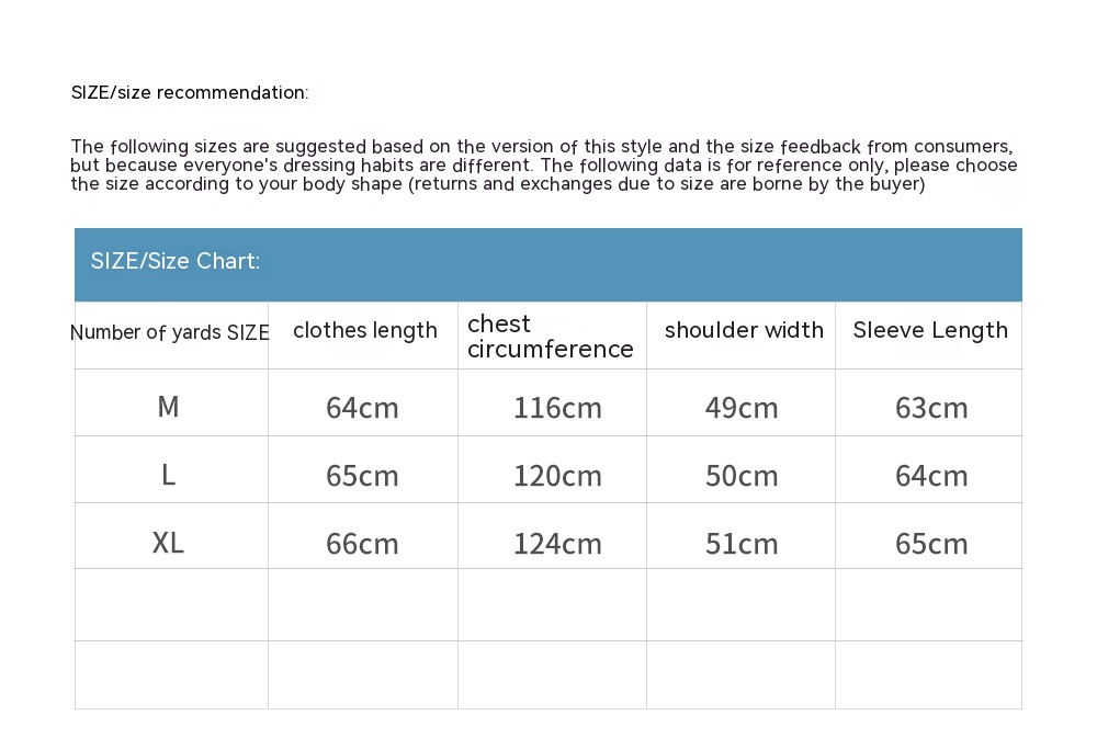 1. Asian sizes are 1 to 2 sizes smaller than European and American people. Choose the larger size if your size between two sizes. Please allow 2-3cm differences due to manual measurement. 2. Please check the size chart carefully before you buy the item, if you don't know how to choose size, please contact our customer service. 3.As you know, the different computers display colors differently, the color of the actual item may vary slightly from the following images.