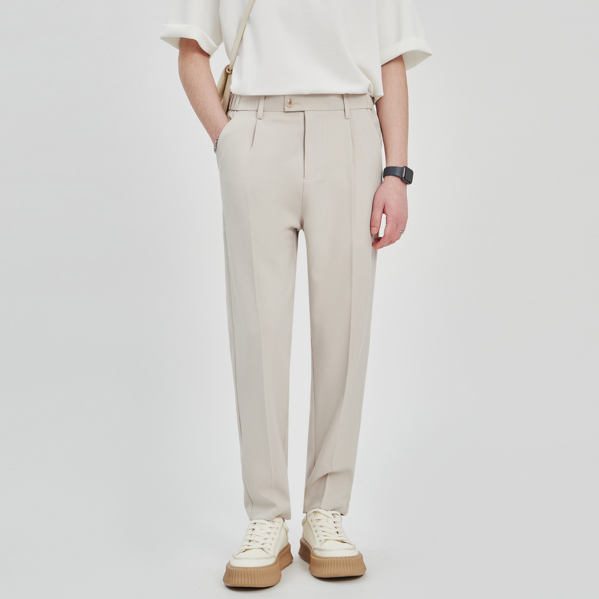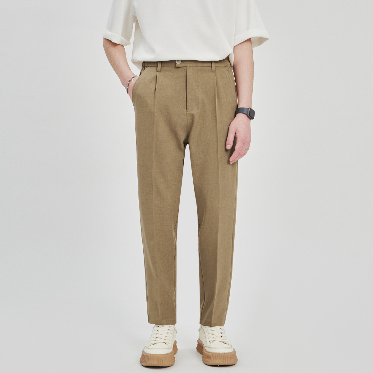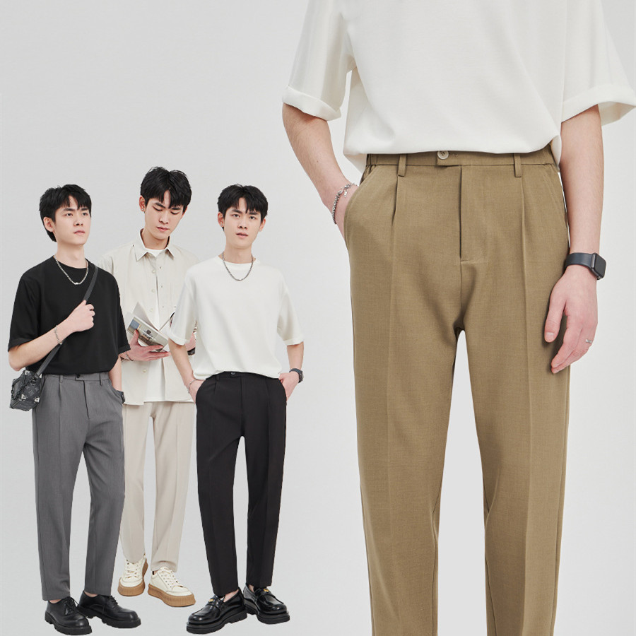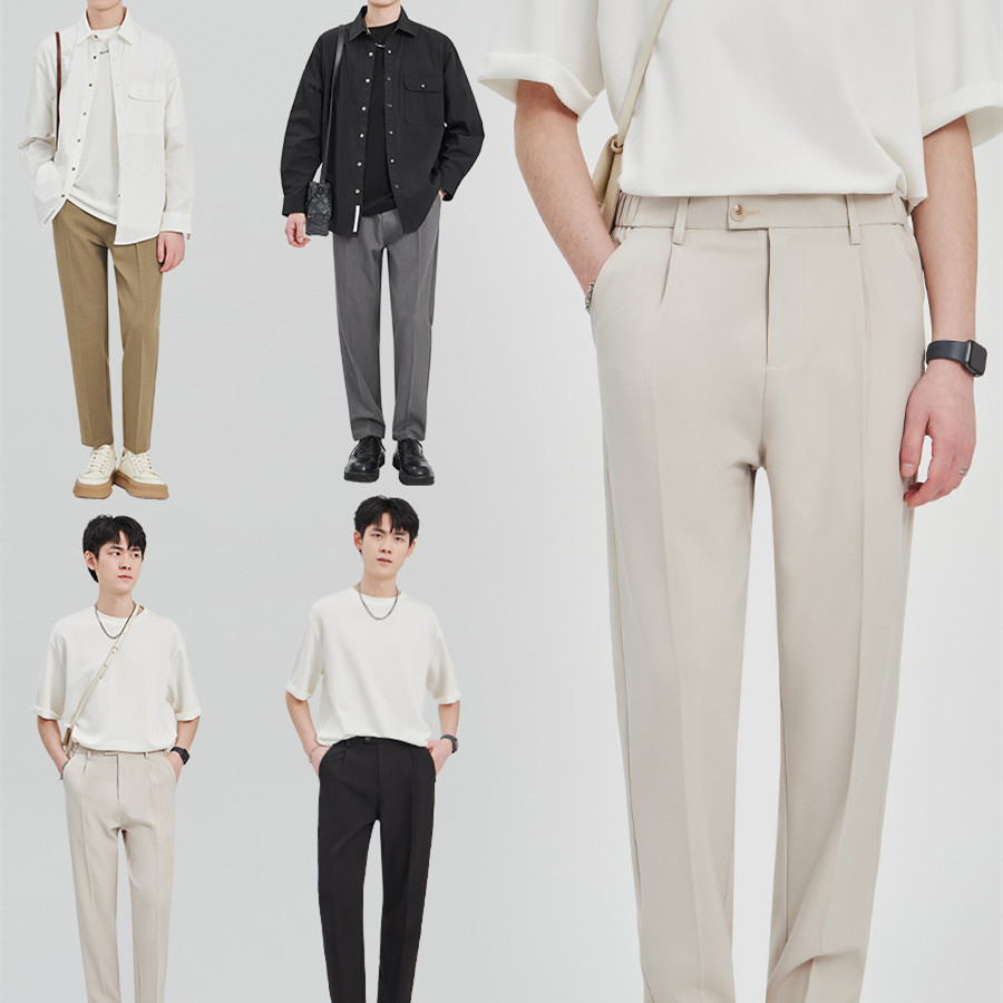 Men's Loose Cotton Casual Straight-leg Suit Pants