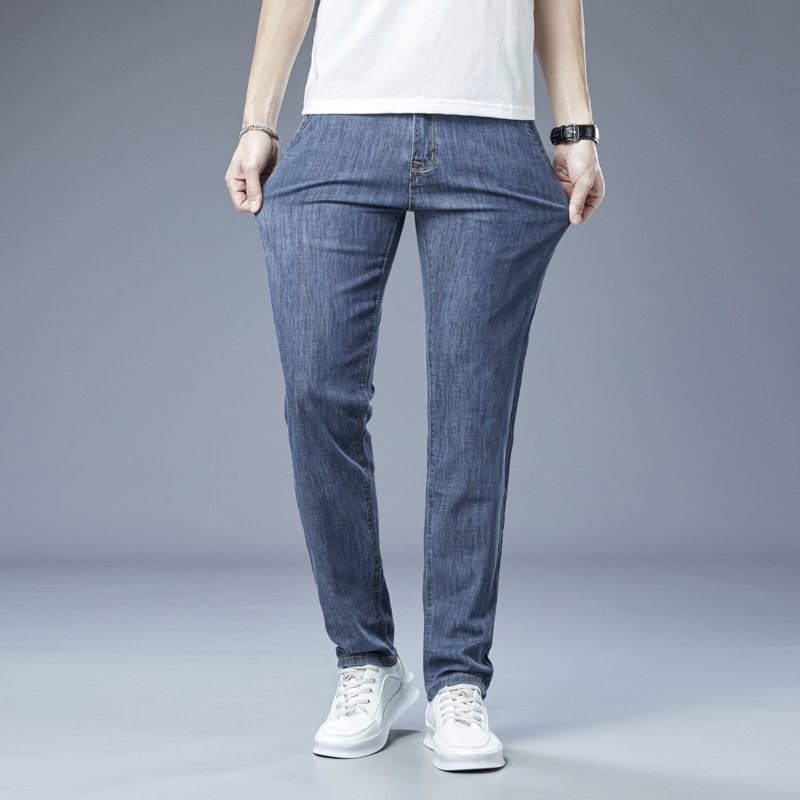 Men's Loose Elastic Jeans Straight Solid Color Casual Trousers