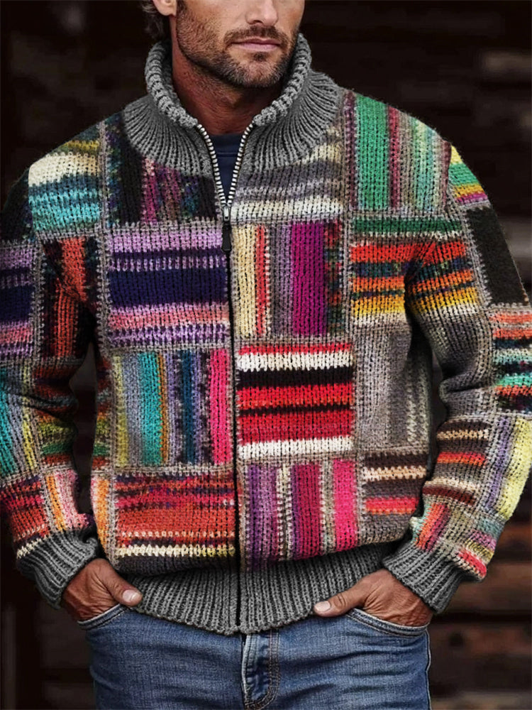 Mens Loose-Fit Stand-Up Collar Zip-Up Jacket Top