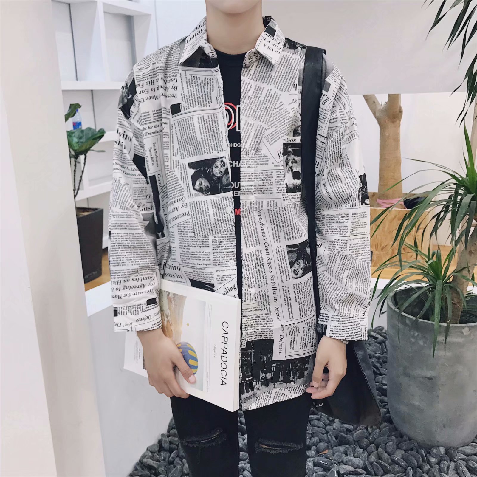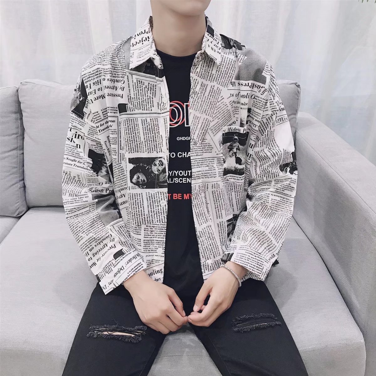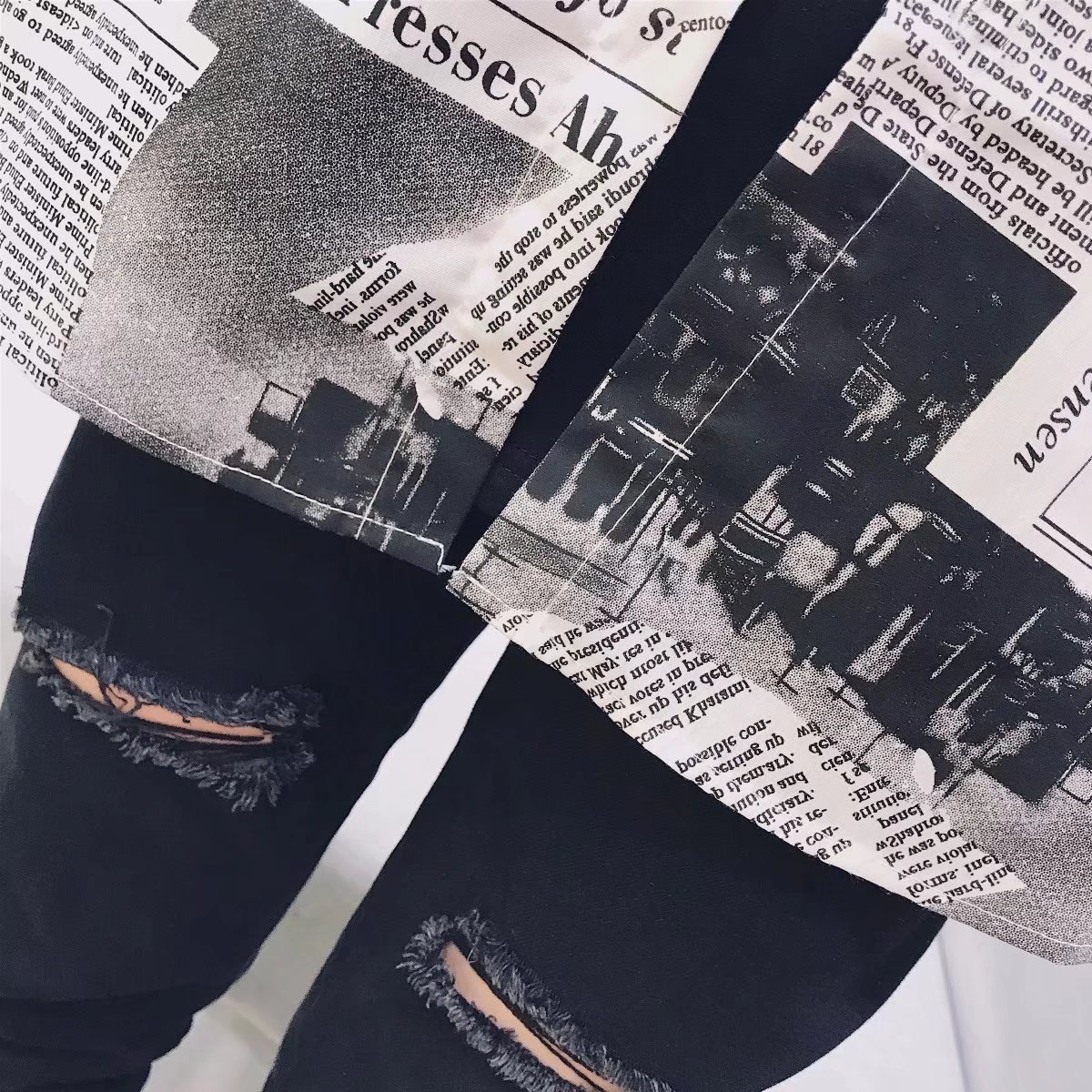 Color: Newspaper long shirt picture color