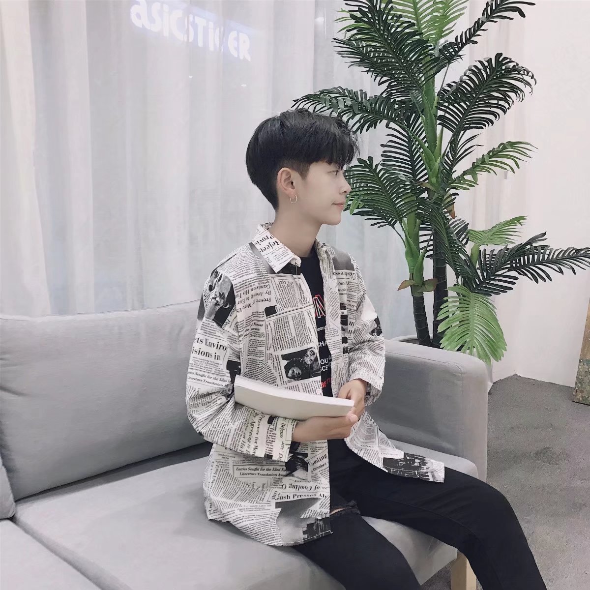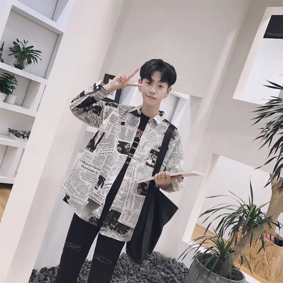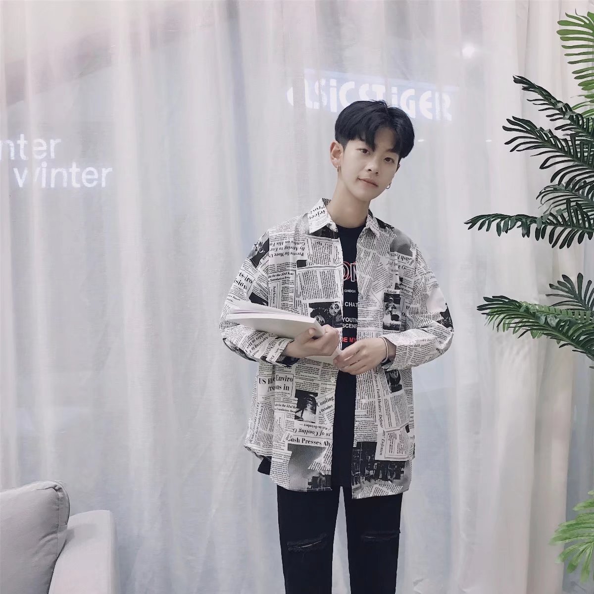 Color: Newspaper long shirt picture color