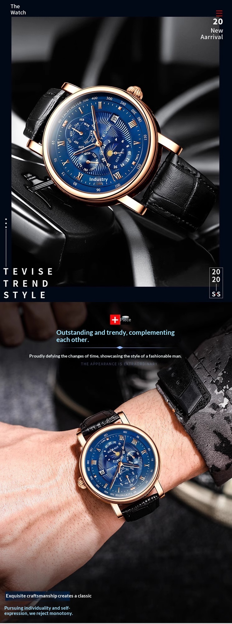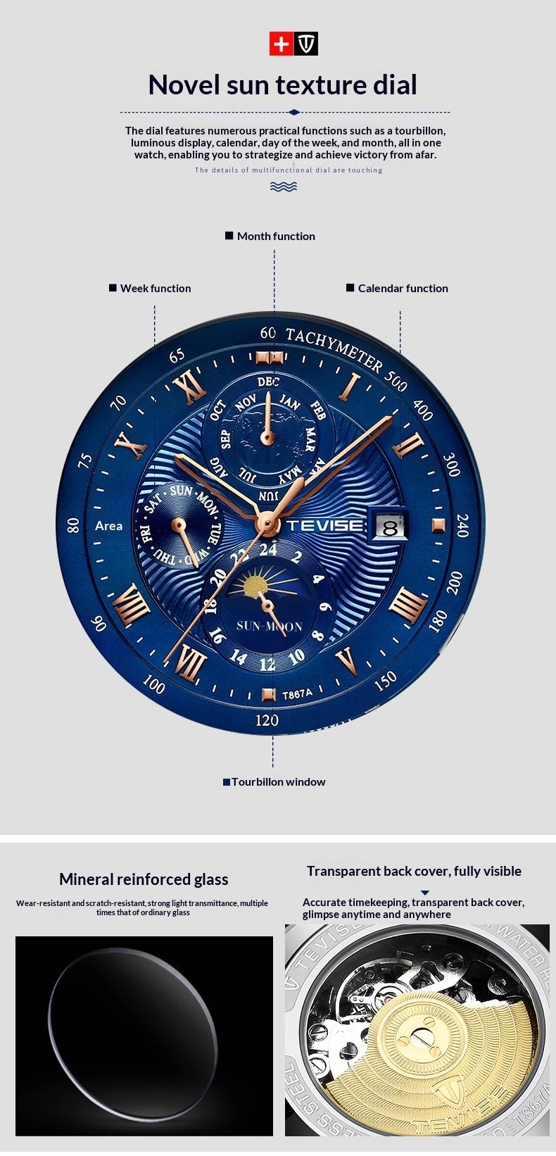 Product information:Shape: RoundCase Material: AlloyStyle: BusinessDial Diameter: 44mmDial Thickness: 17mm