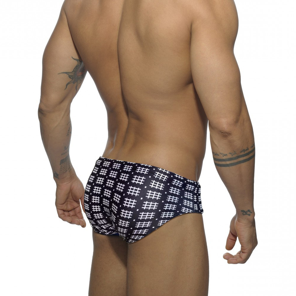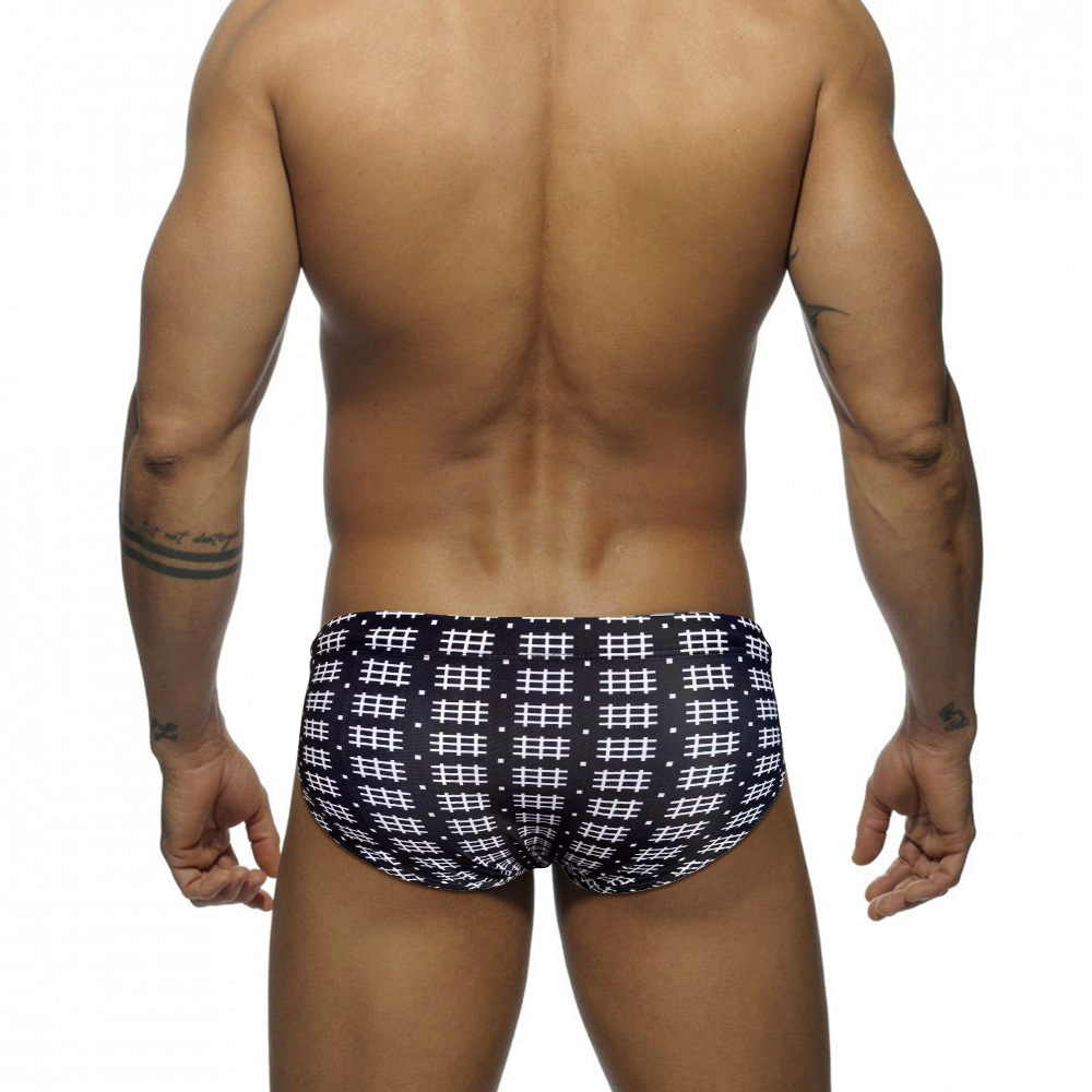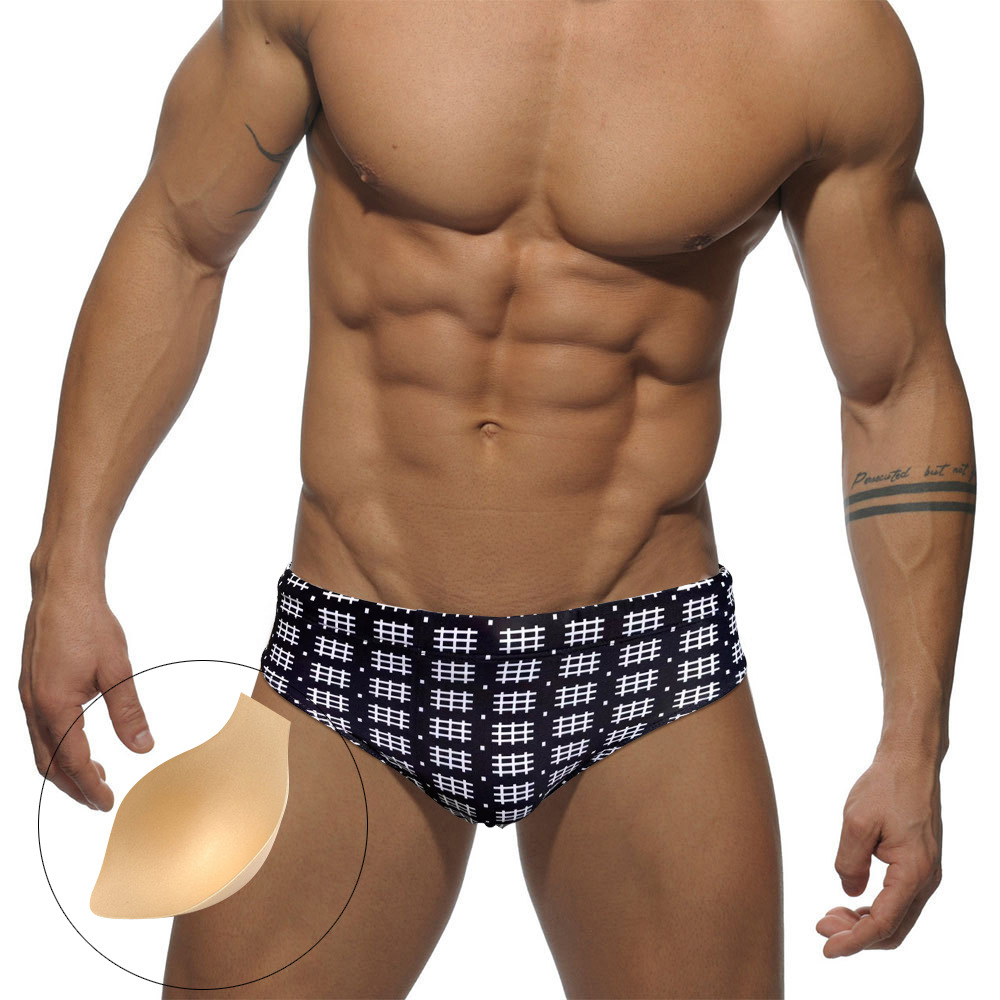 Men's Mesh Print Quick-drying Training Briefs Low Waist Swimming Trunks