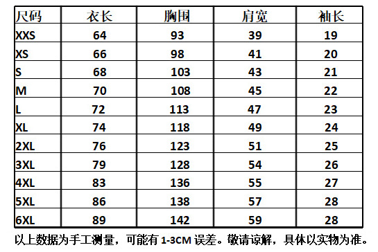 Size: XXS,XS,S,M,L,XL,XXL,XXL,XXXXL,5XL,6XL