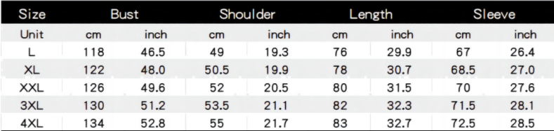 Size: L,XL,2XL,3XL,4XL
