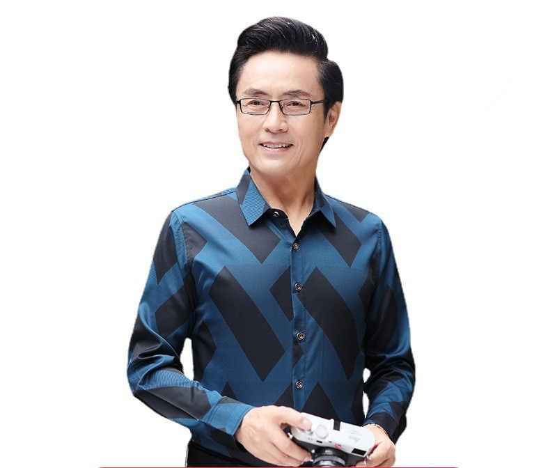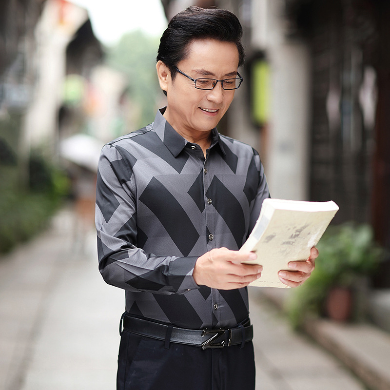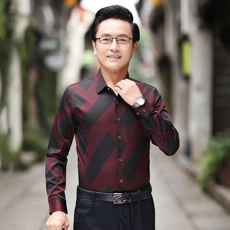 Men's Middle-aged And Elderly Long-sleeved Shirt Printing Plus Size