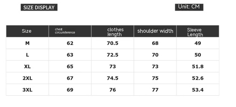 Size: M L XL 2XL 3XL
