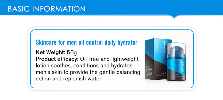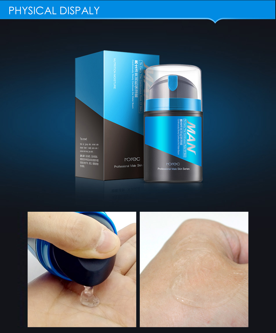 Men cream.Ultra-light texture.Nourishing and moisturizing.Oil control.Fresh and fragrant.Improving skin firmness.Gel type.No dry sense.Aloe extract.