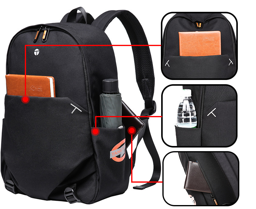 Package internal structure: ID bag, laminated zipper bag, zipper pocket, computer pocket