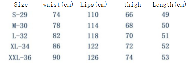 Size: S-29, M-30, L-32, XL-34, XXL-36