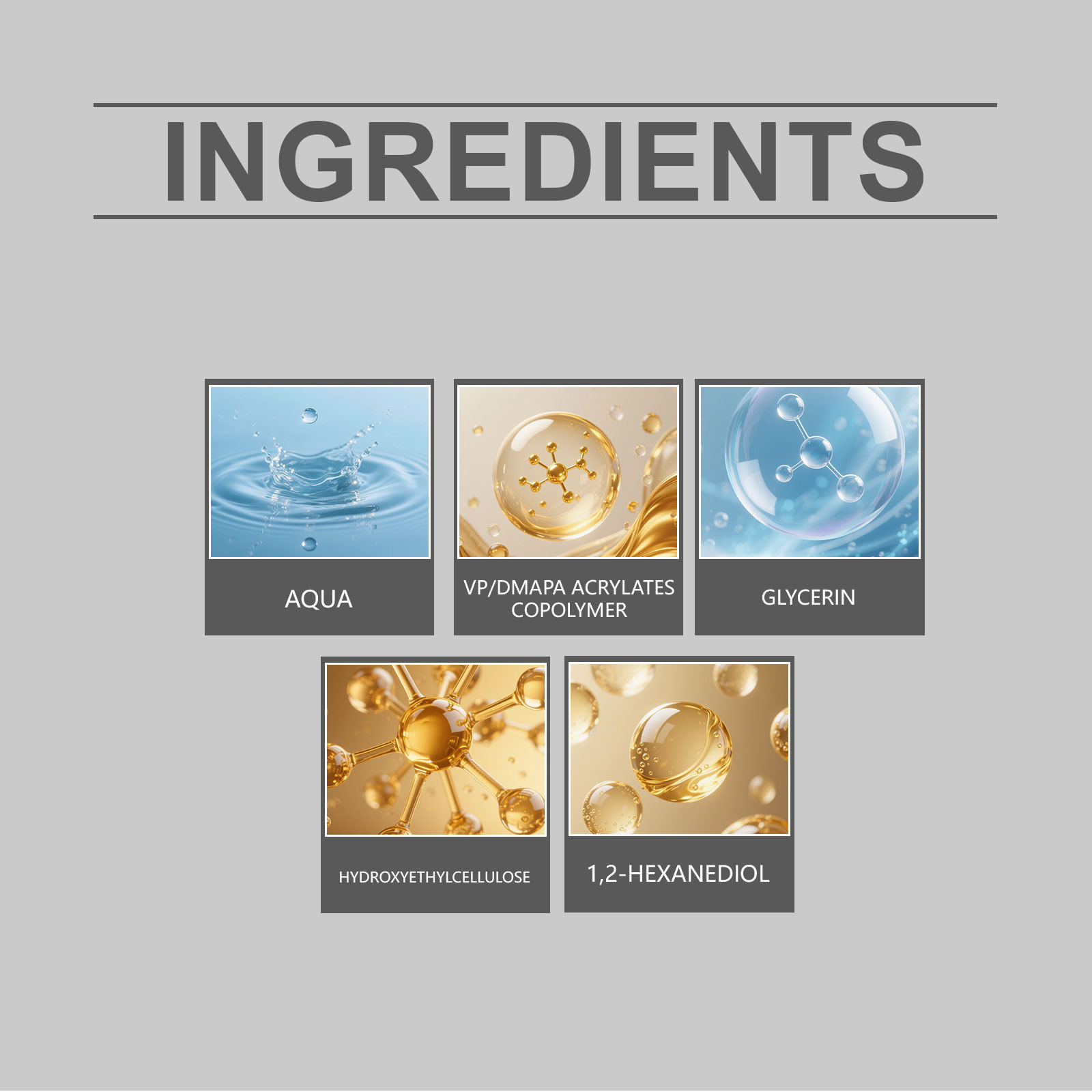 Product information:Ingredients: Water, VPDMAPA Acrylic Acid Ester Copolymer, Glycerol, Hydroxyethyl Cellulose, 1, 2-hexanediol