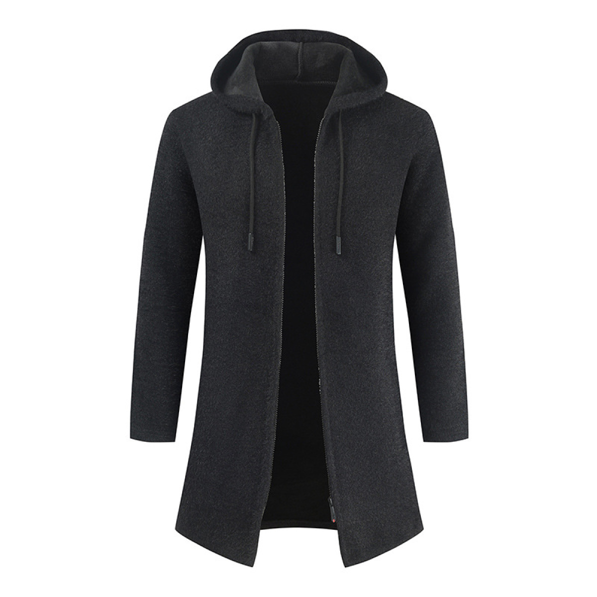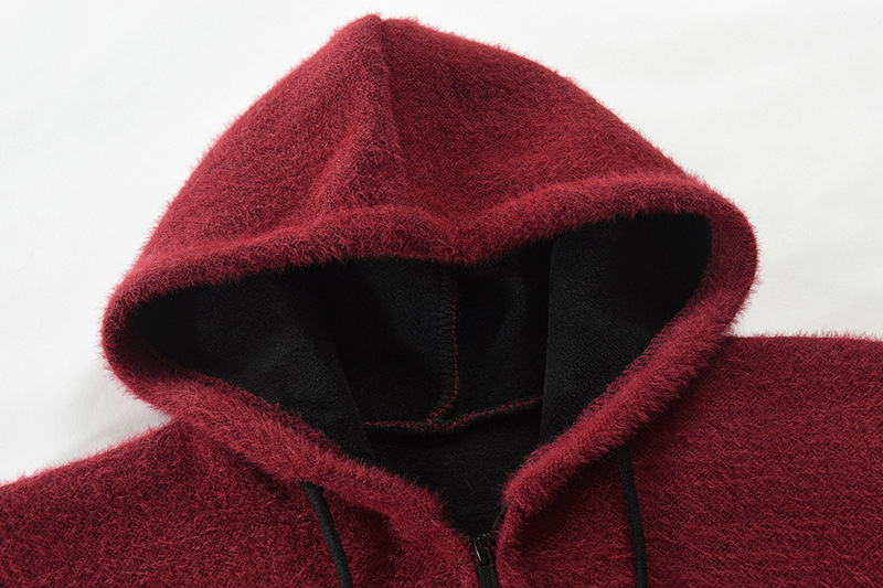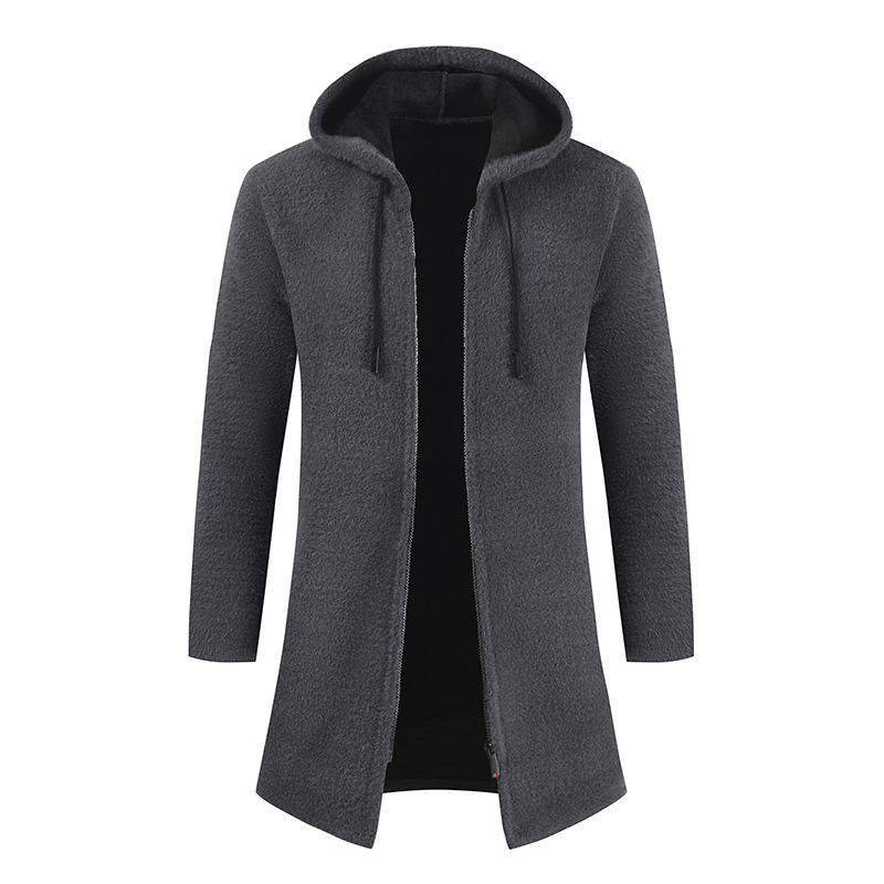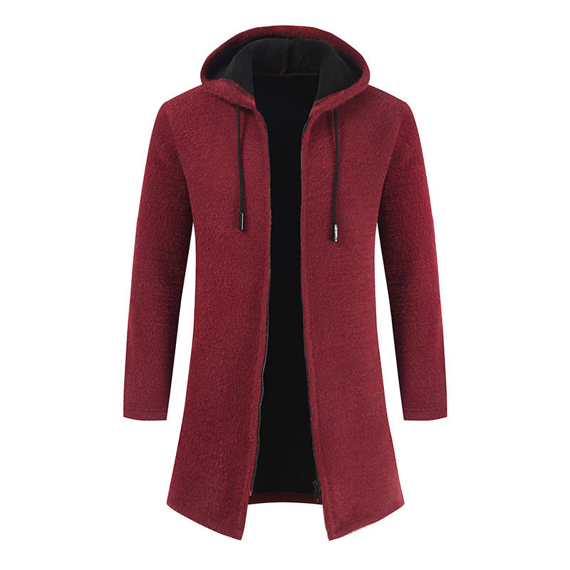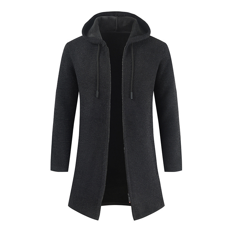 Men's New Solid Color Cashmere Knitting Cardigan Hooded Medium Long Sweater