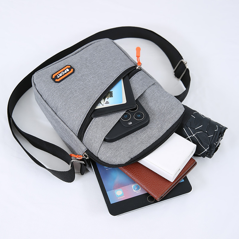 Product information:Material n: nylonColor n: gray, black and blue.Accommodation computer size n: 8 inchesPacking list:Crossbody bag *1