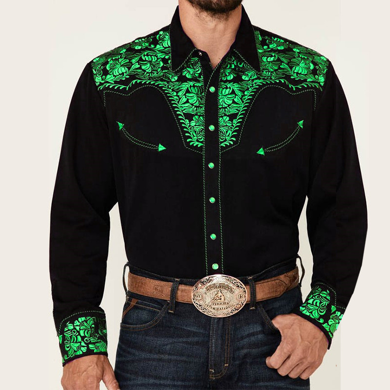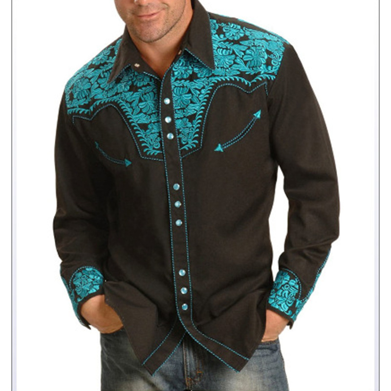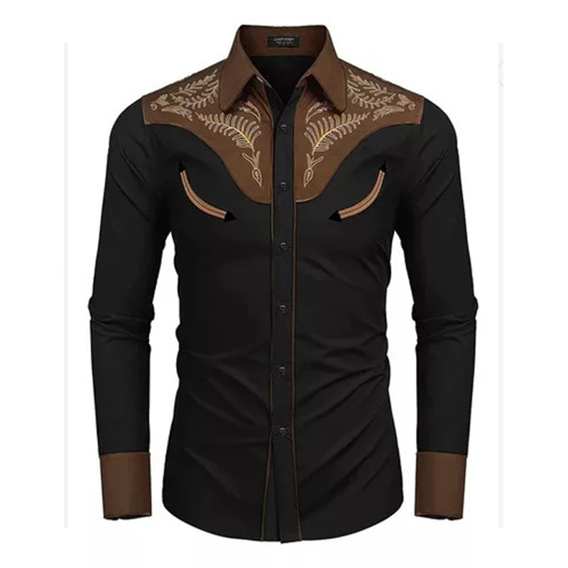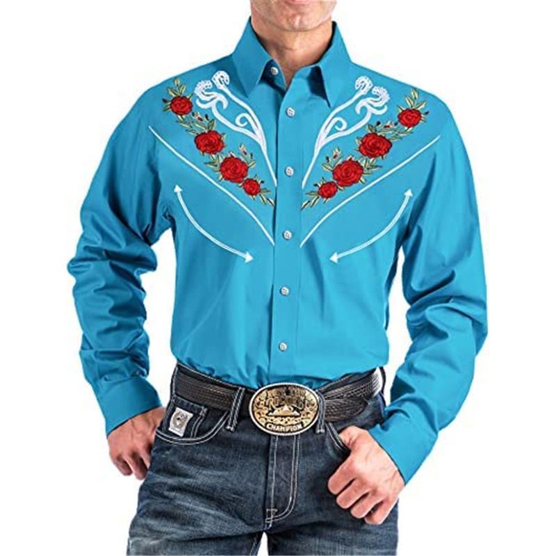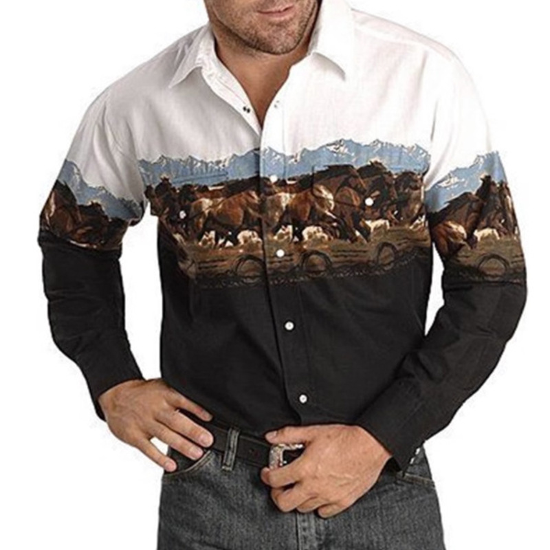 Men's Outdoor Casual Polo Collar Long Sleeve Button Printed Top