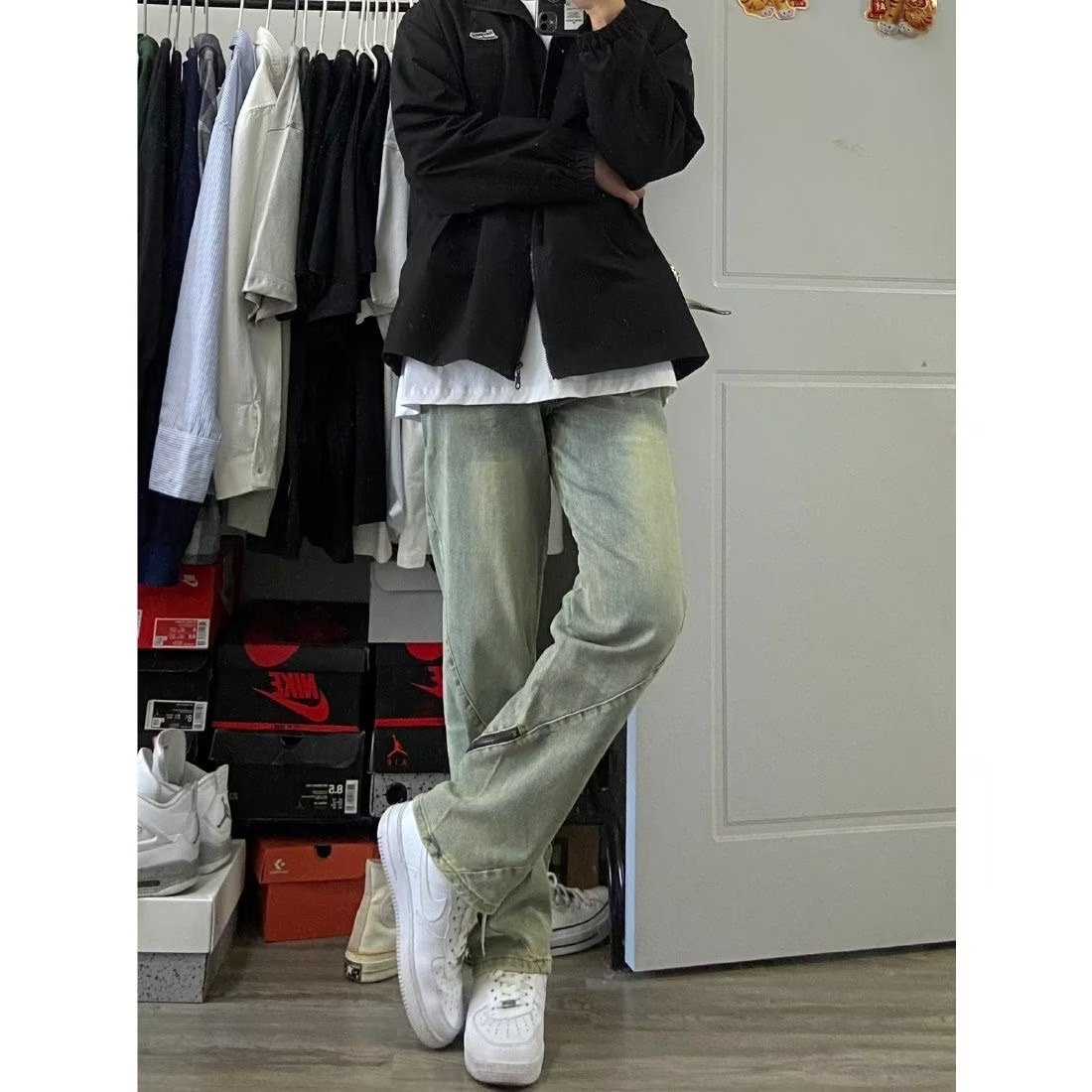 Trousers style: straight.