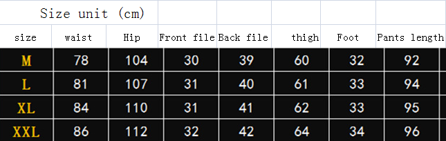 Size: M (165 height / 110 kg), L (170 height / 125 kg), XL (175 height / 140 kg), XXL (180 height / 160 kg)