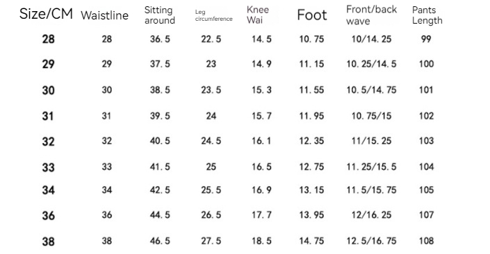Size: 28, 29, 30, 31, 32, 33, 34, 36, 38