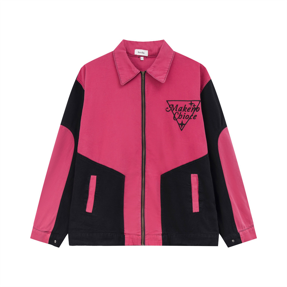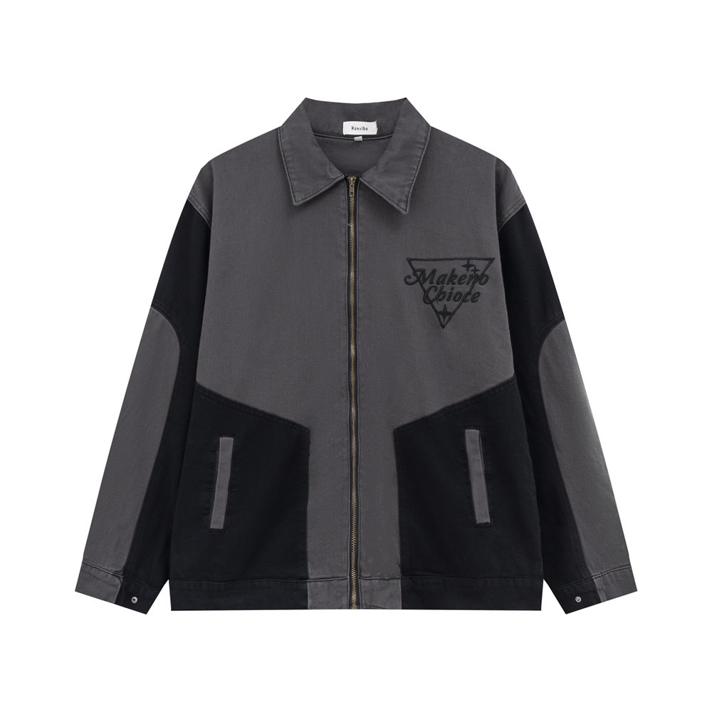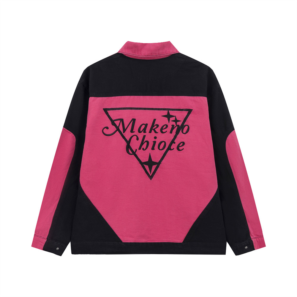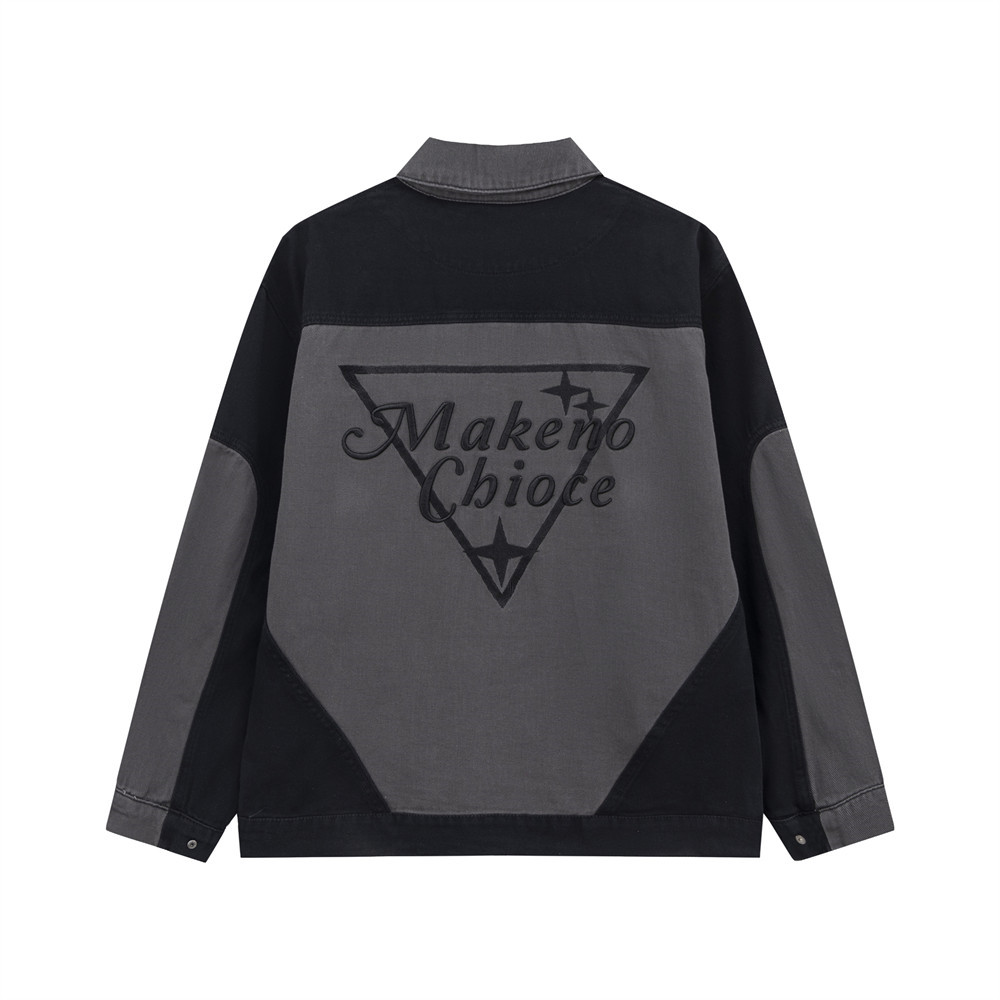 Men's Patchwork Contrast Color Lapels Denim Jacket