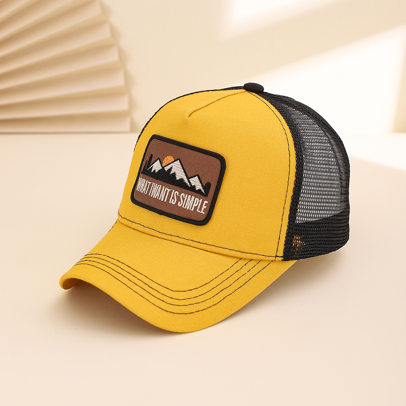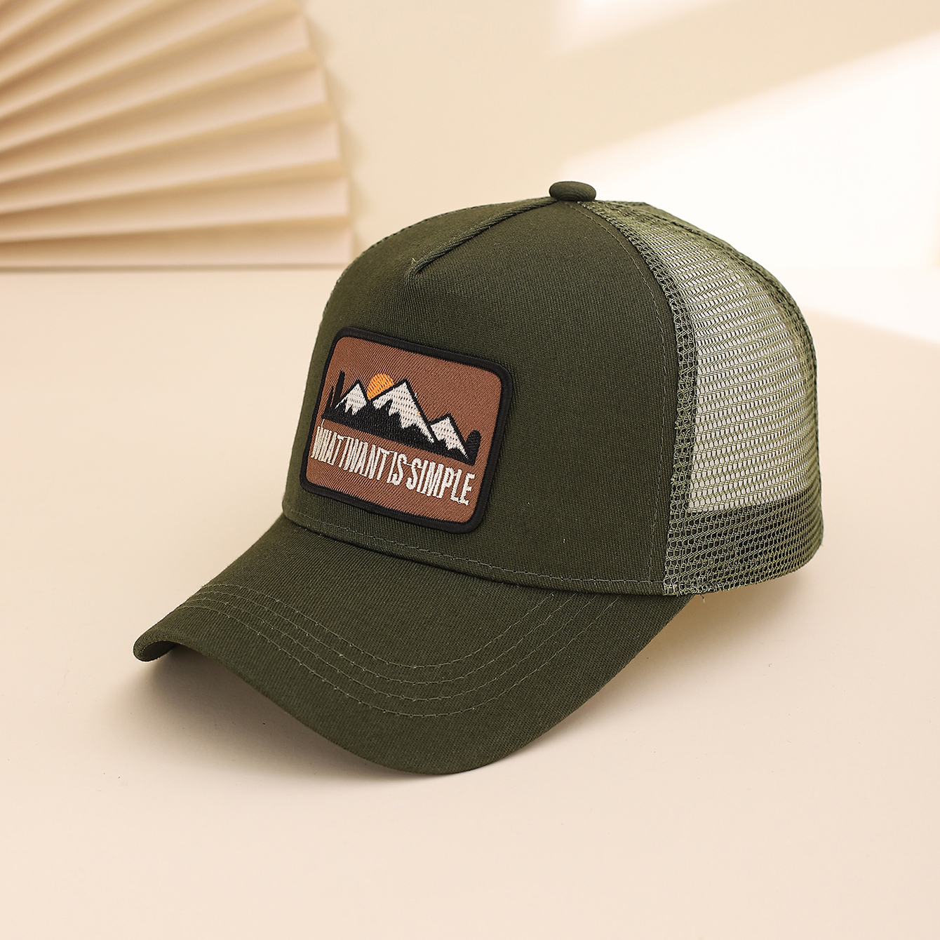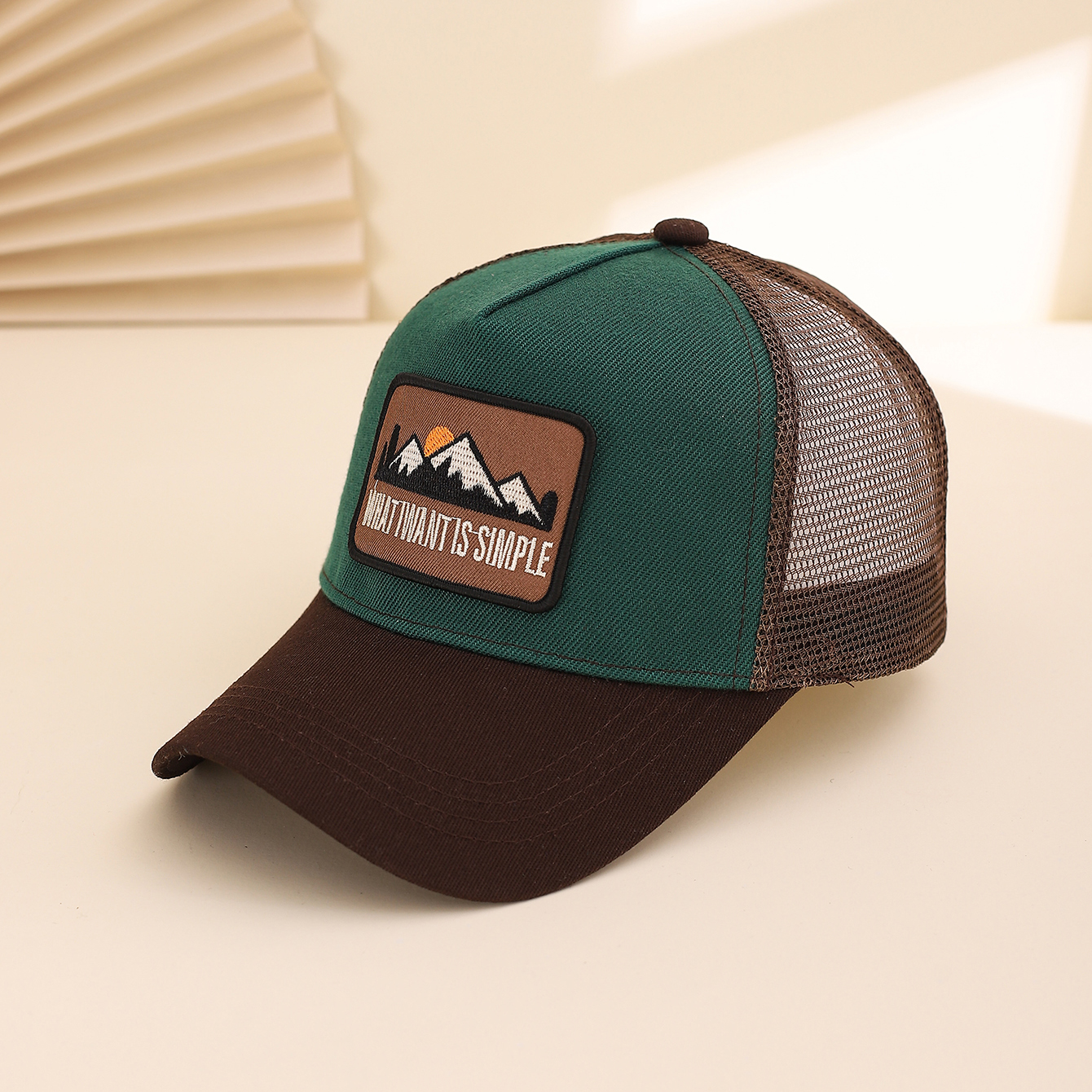 Men's Patchwork Sunset Mountain Mesh Baseball Cap, Fashionable And Casual Baseball Cap, Spring And Summer Outdoor Travel And Sports
