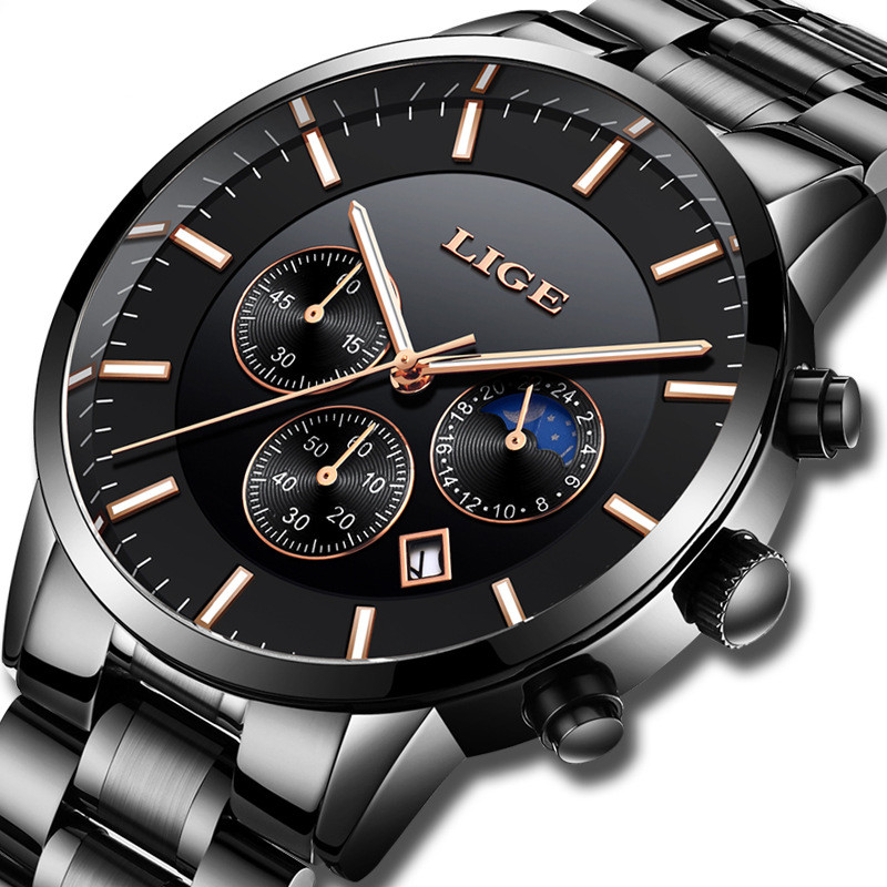 Men's Personality Fashion Trend Casual Waterproof Moon Phase Quartz Watch Business Sports Watch