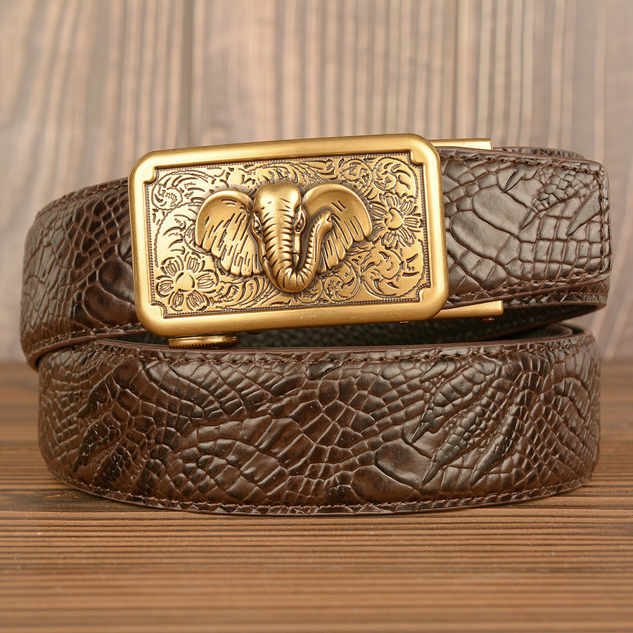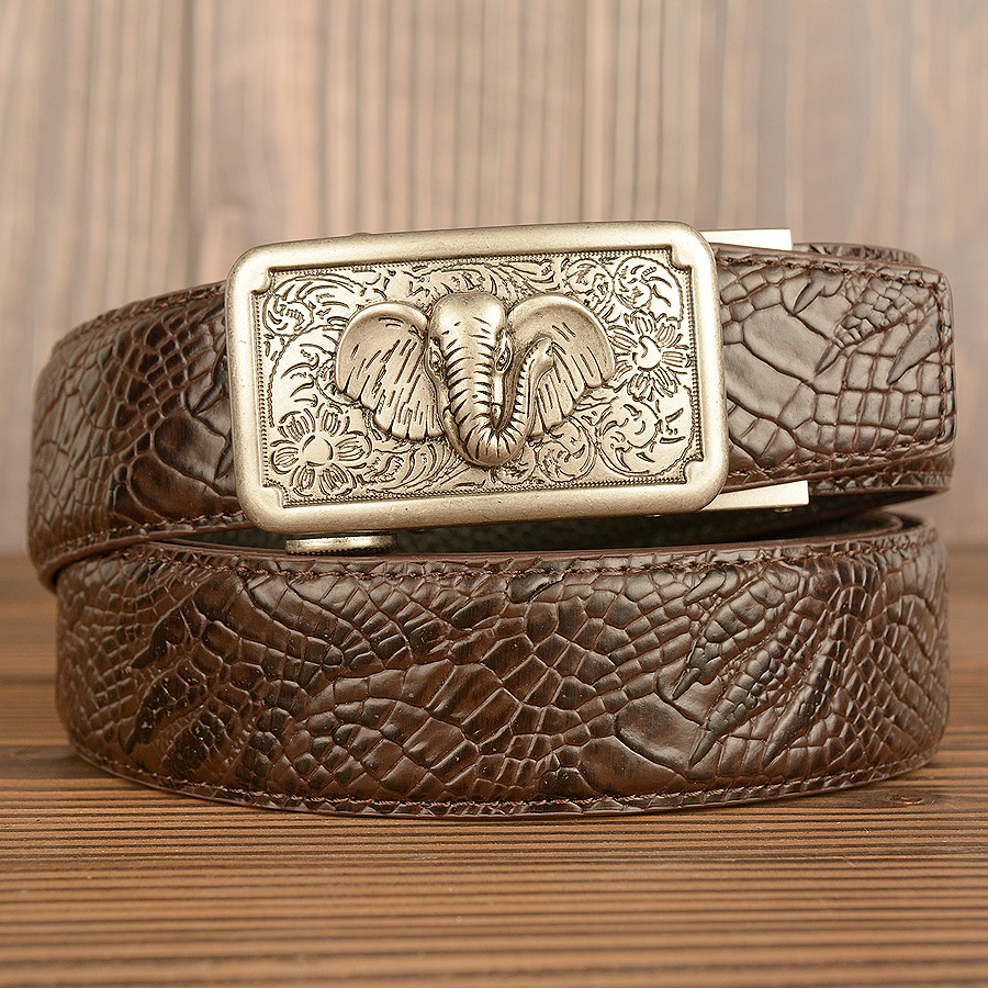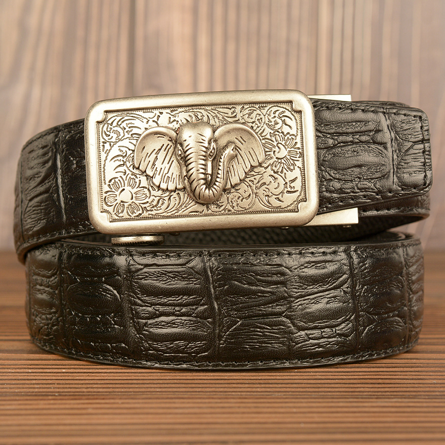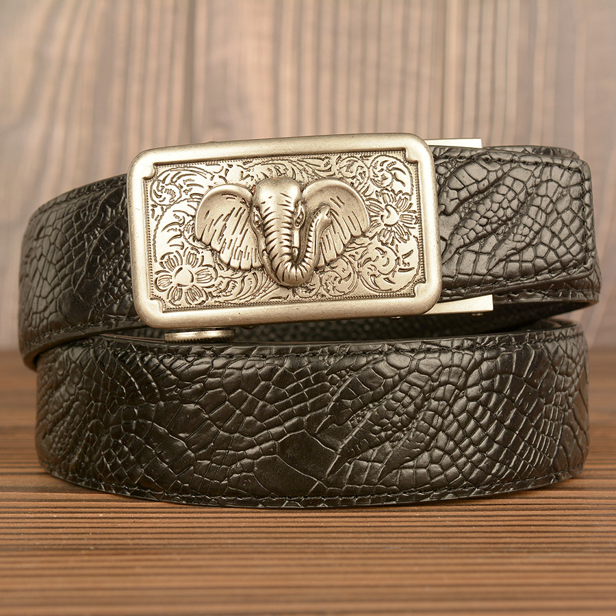 Color: black alligator pattern big nose elephant gold buckle, brown alligator pattern big nose elephant gold buckle, black alligator pattern big nose elephant silver buckle, brown alligator pattern big nose elephant silver buckle, black alligator claw pattern big nose elephant gold buckle, brown alligator claw pattern big nose elephant gold buckle, black alligator claw pattern big nose elephant silver buckle, brown alligator claw pattern big nose elephant silver buckle, black snakeskin pattern big nose elephant gold buckle, black snakeskin pattern big nose elephant silver buckle