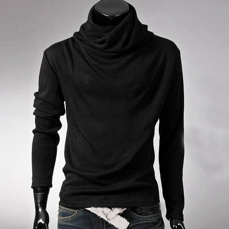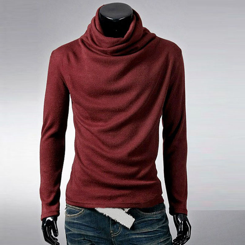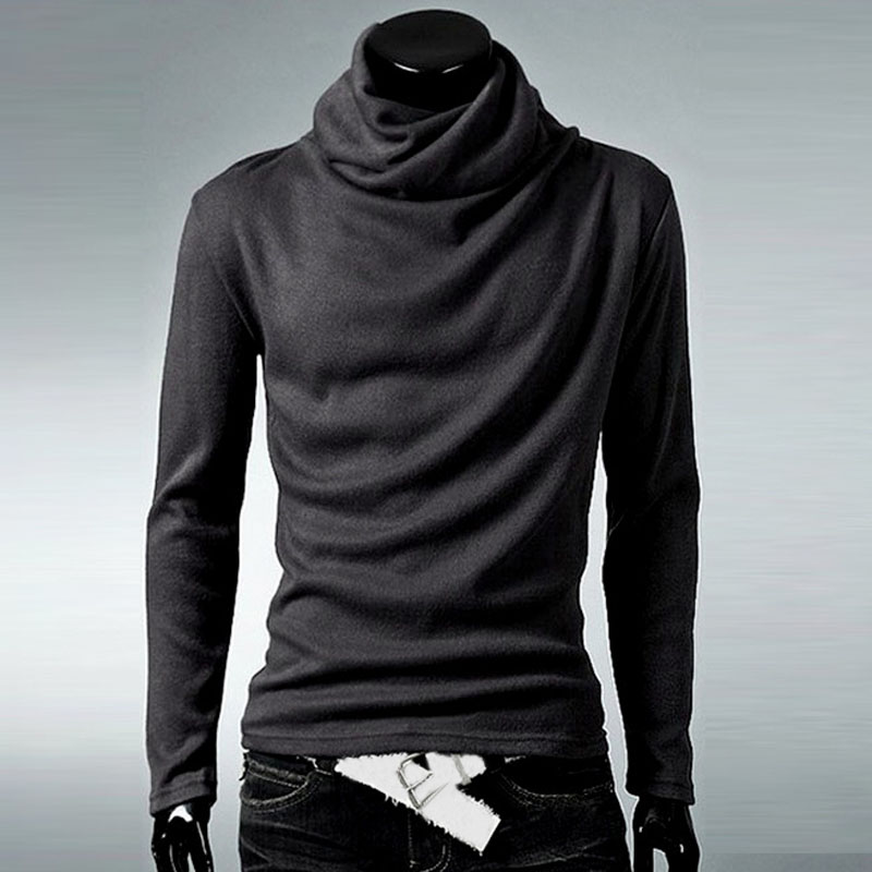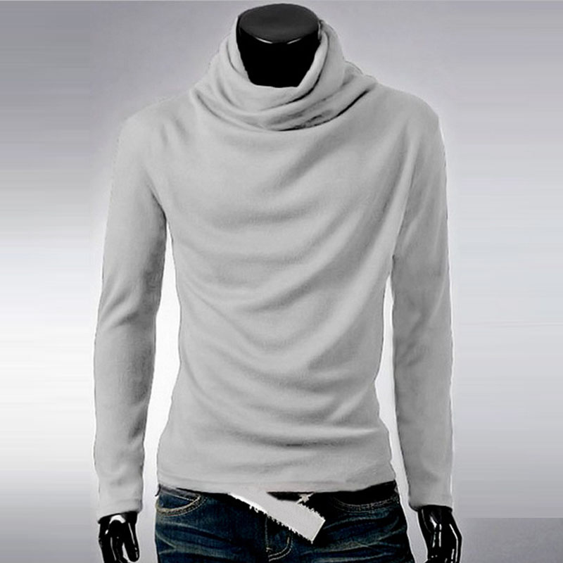 Men's pile collar T-shirt solid color long-sleeved bottoming shirt