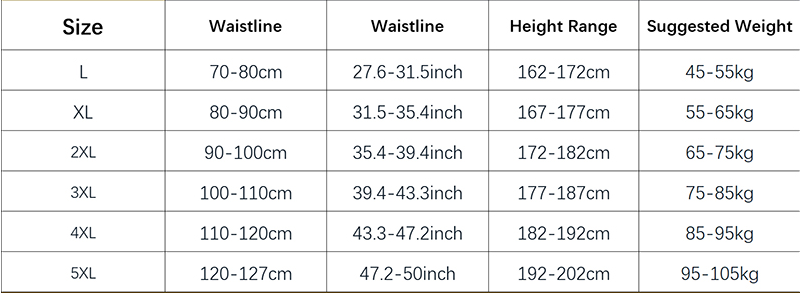 Size: L, XL, XXL, XXXL, XXXXL