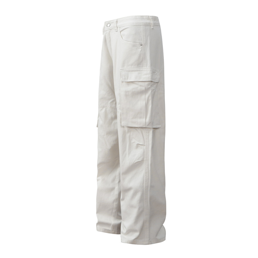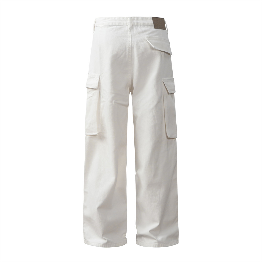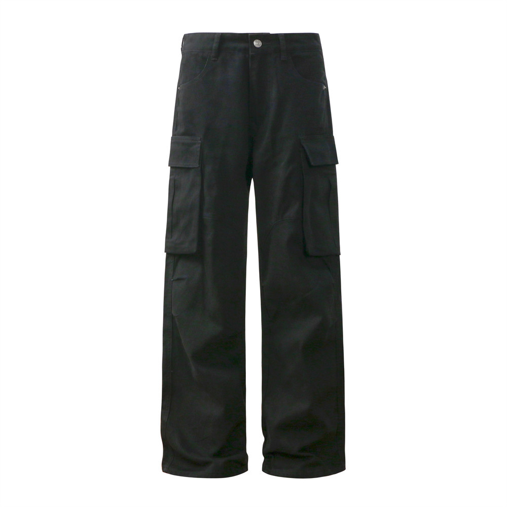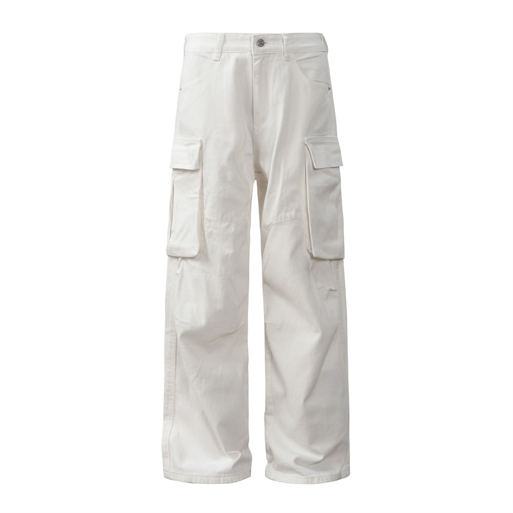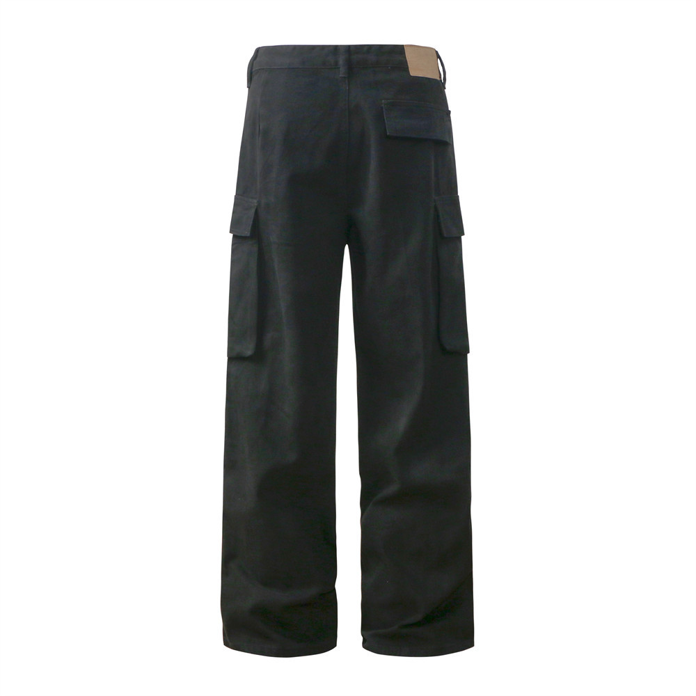 Men's Pleated Solid Color Loose Multi-pocket Workwear Trousers