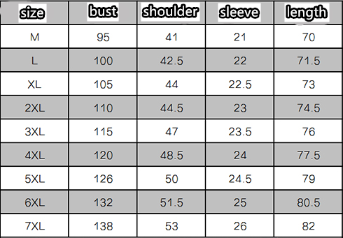 Size: M bust 95, L bust 100, XL bust 105, 2XL bust 110, 3XL bust 115, 4XL bust 120, 5XL bust 126, 6XL bust 132, 7XL bust 138