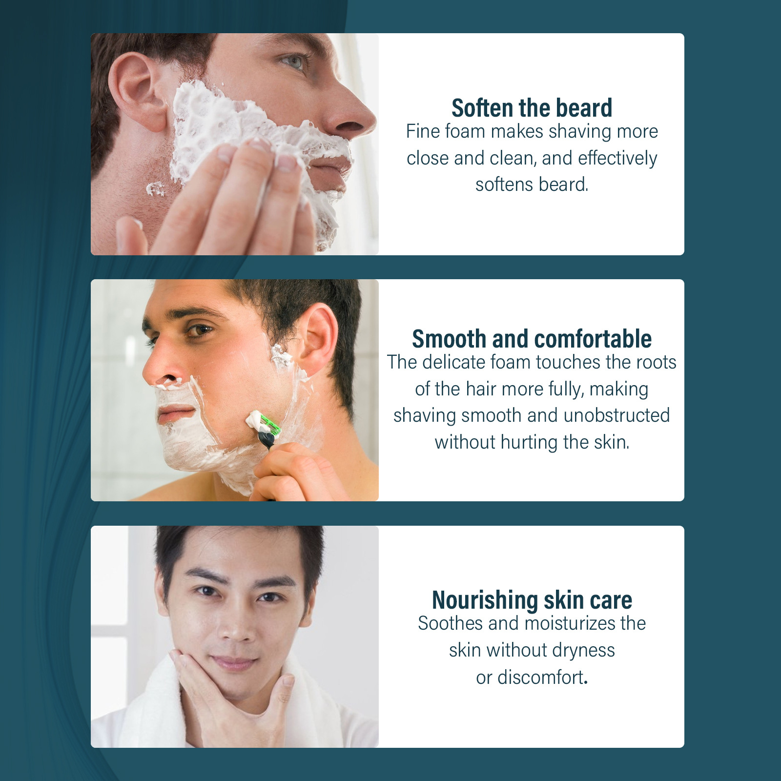 Product features: Softening beard, cleaner shaving
