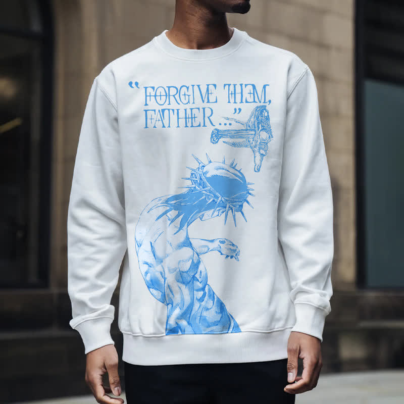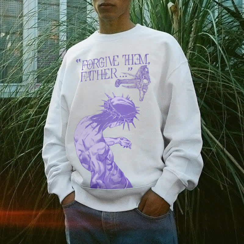 Color: white sweatshirt, blue sweatshirt, purple sweatshirt, black sweatshirt, brown sweatshirt