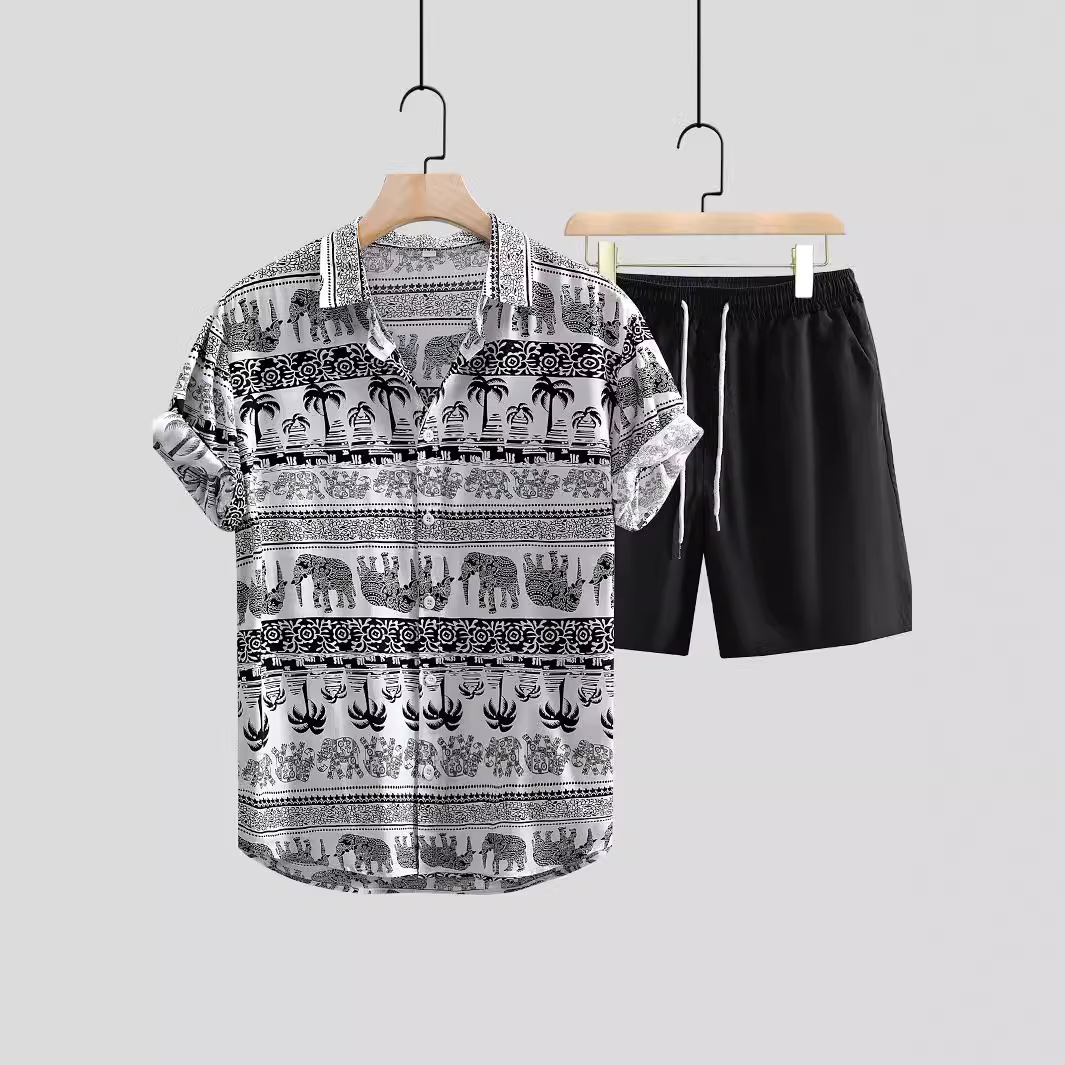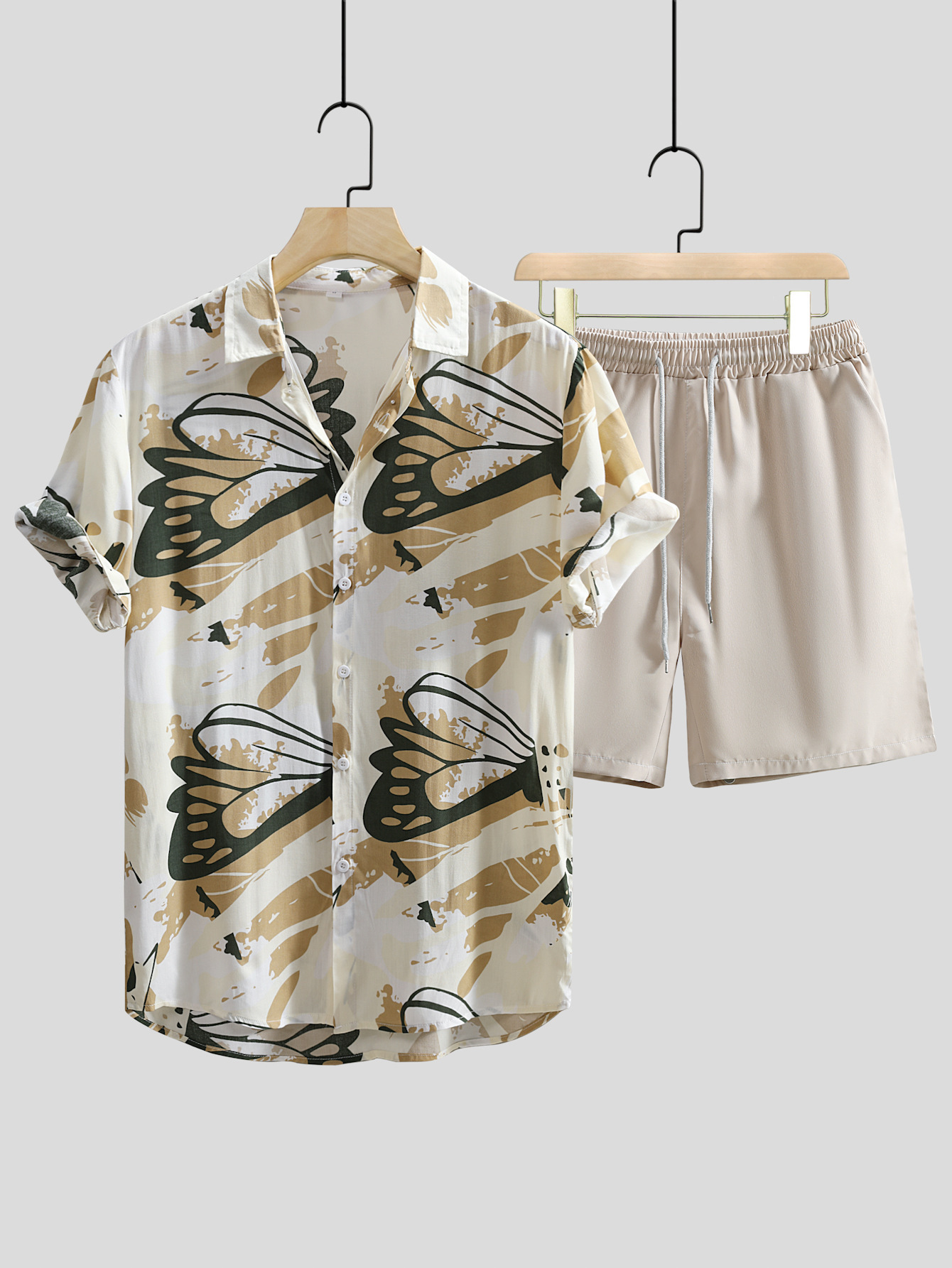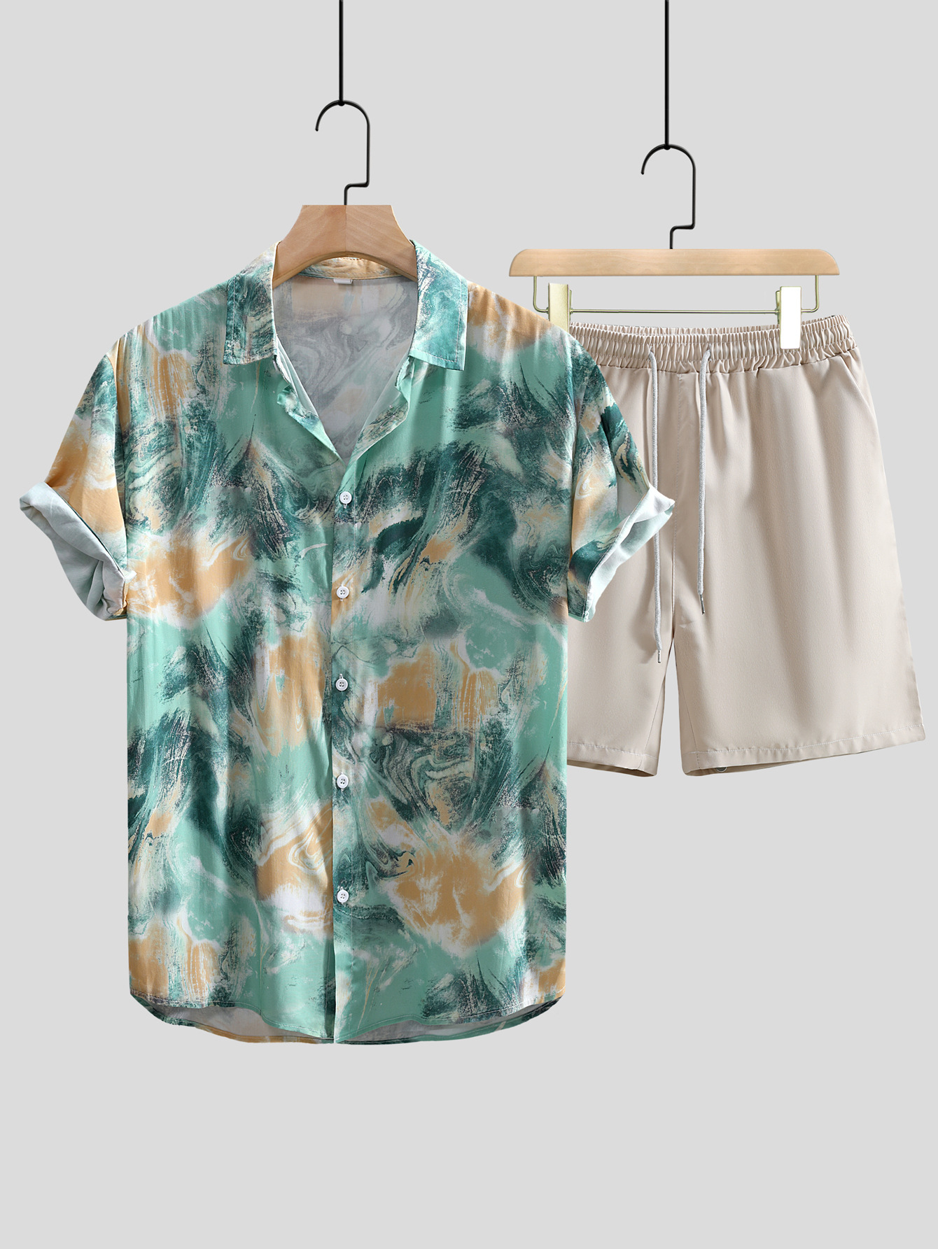 Men's Printed Casual Style Short Sleeve Shirt Outfit