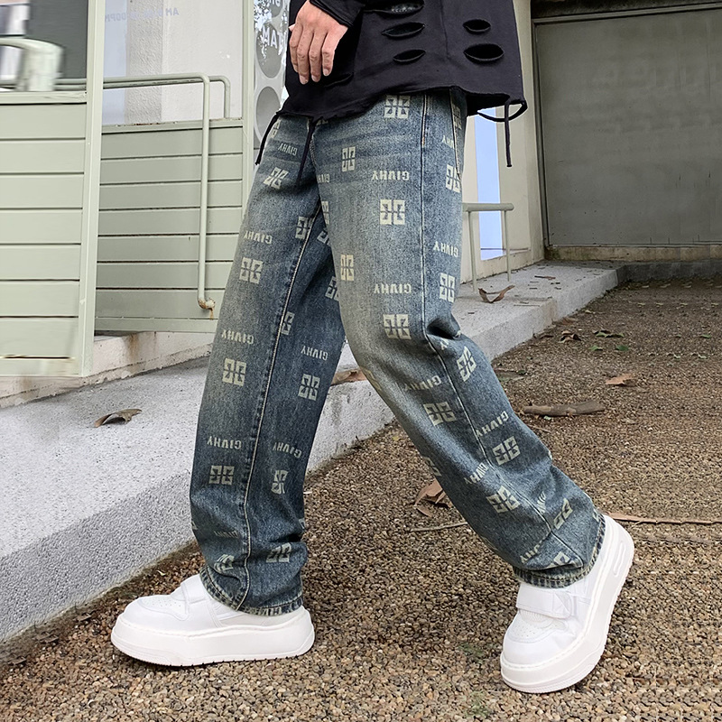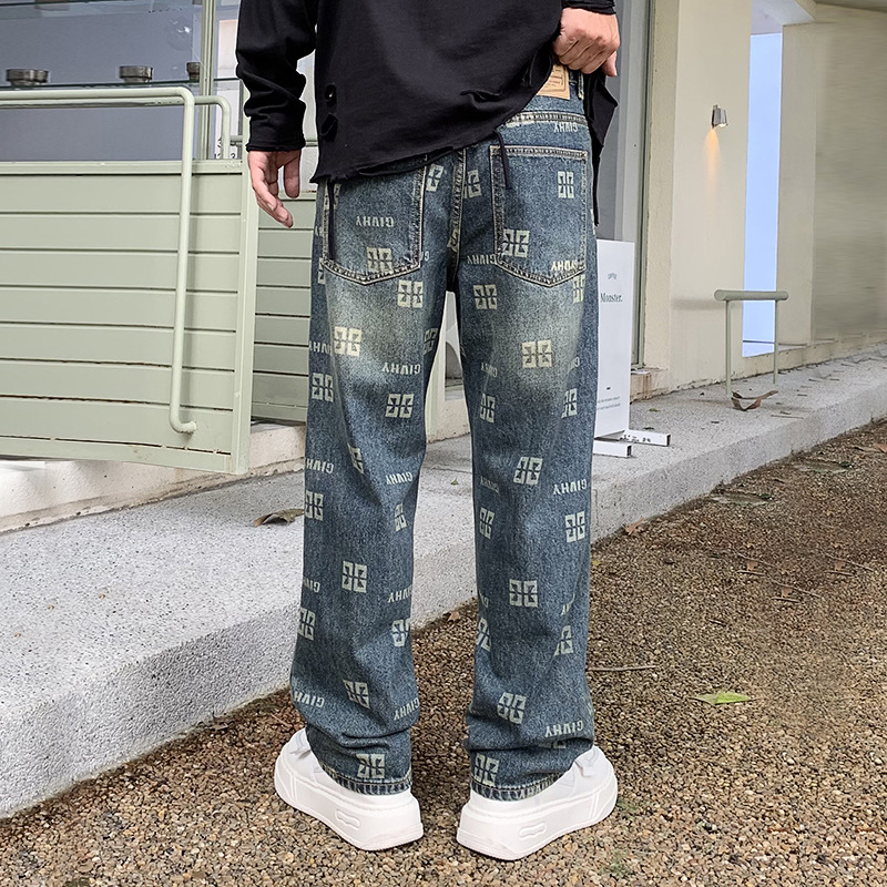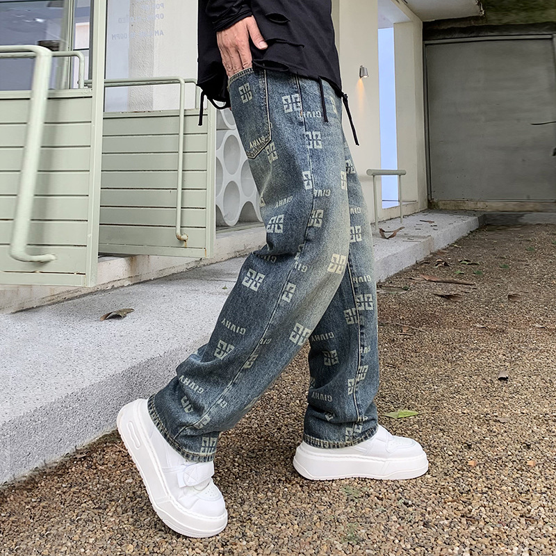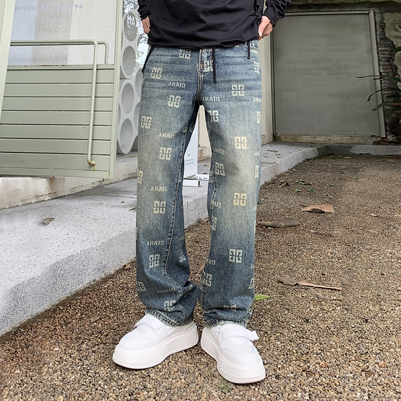 Men's Printed Jeans Straight Fashion Loose Casual Pants