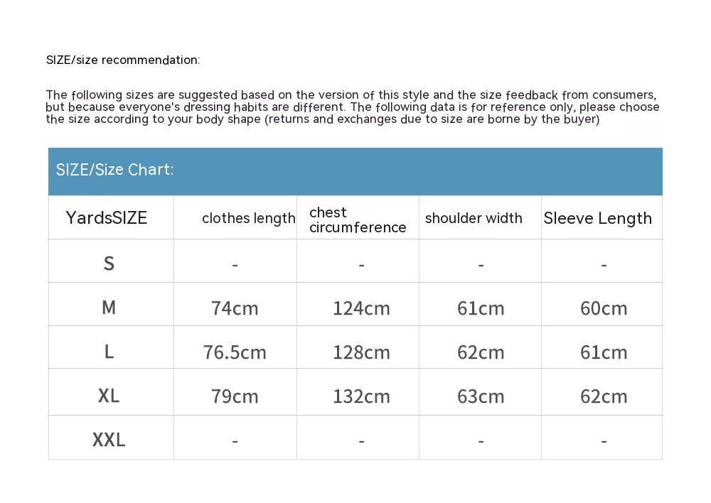 1. Asian sizes are 1 to 2 sizes smaller than European and American people. Choose the larger size if your size between two sizes. Please allow 2-3cm differences due to manual measurement. 2. Please check the size chart carefully before you buy the item, if you don't know how to choose size, please contact our customer service. 3.As you know, the different computers display colors differently, the color of the actual item may vary slightly from the following images.