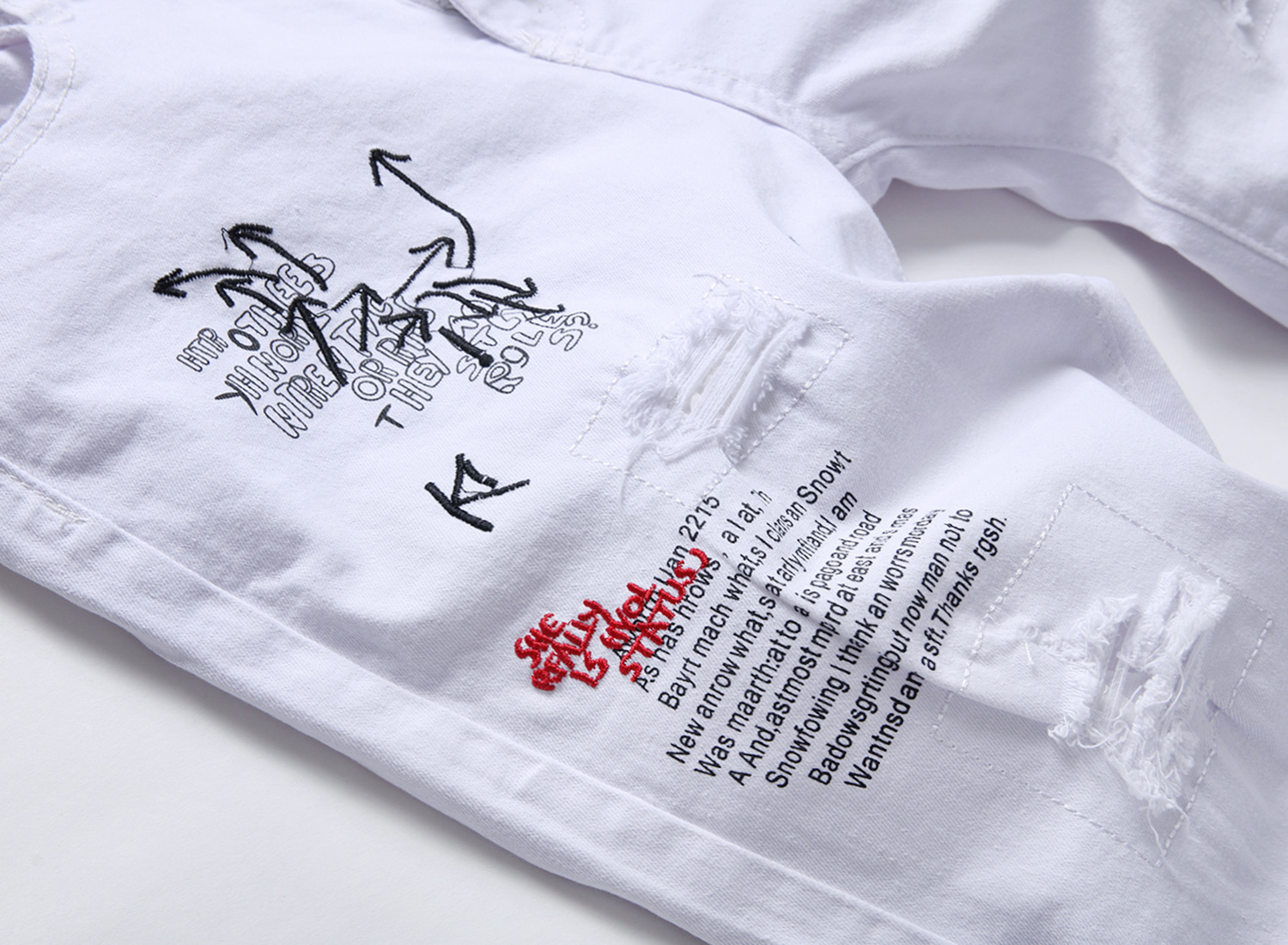 Special craftsmanship: embroidery, washing, fraying, printing