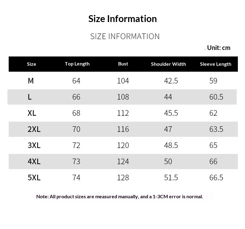 Sizes: M, L, XL, 2XL, 3XL, 4XL, 5XL, 6XL, 7XL, 8XL