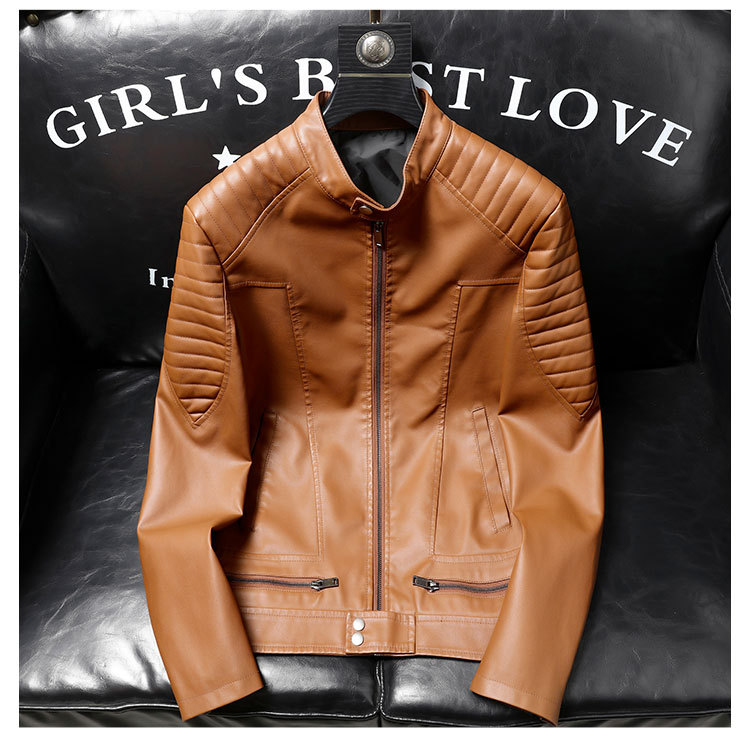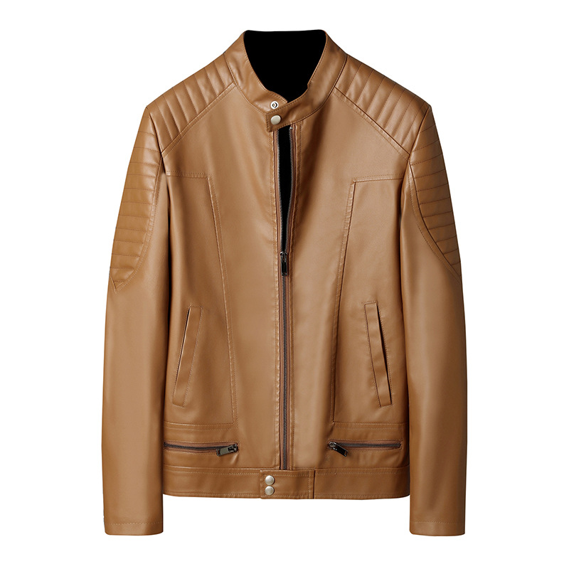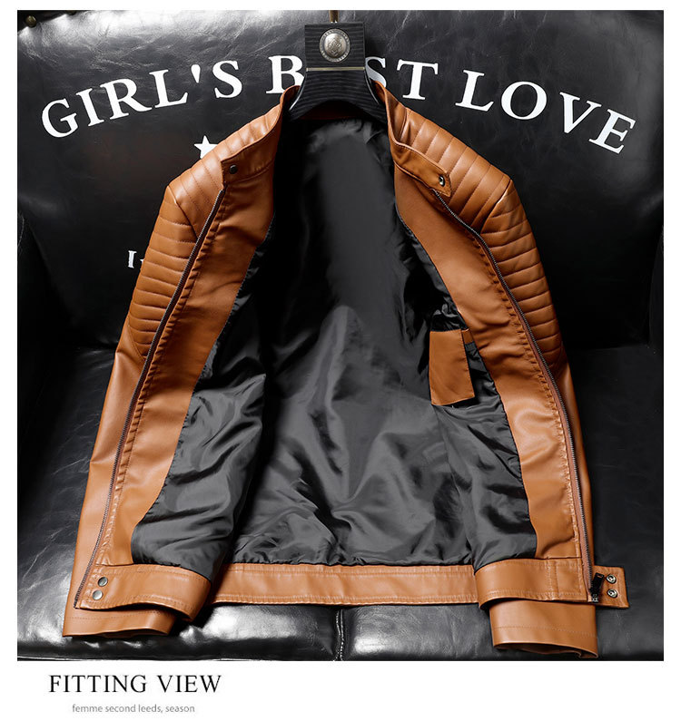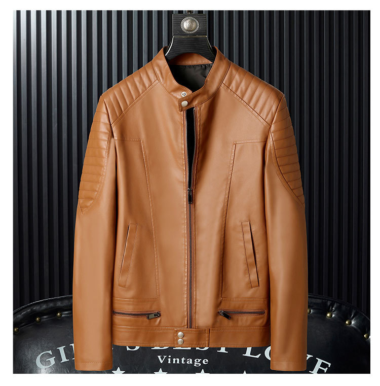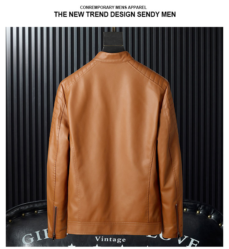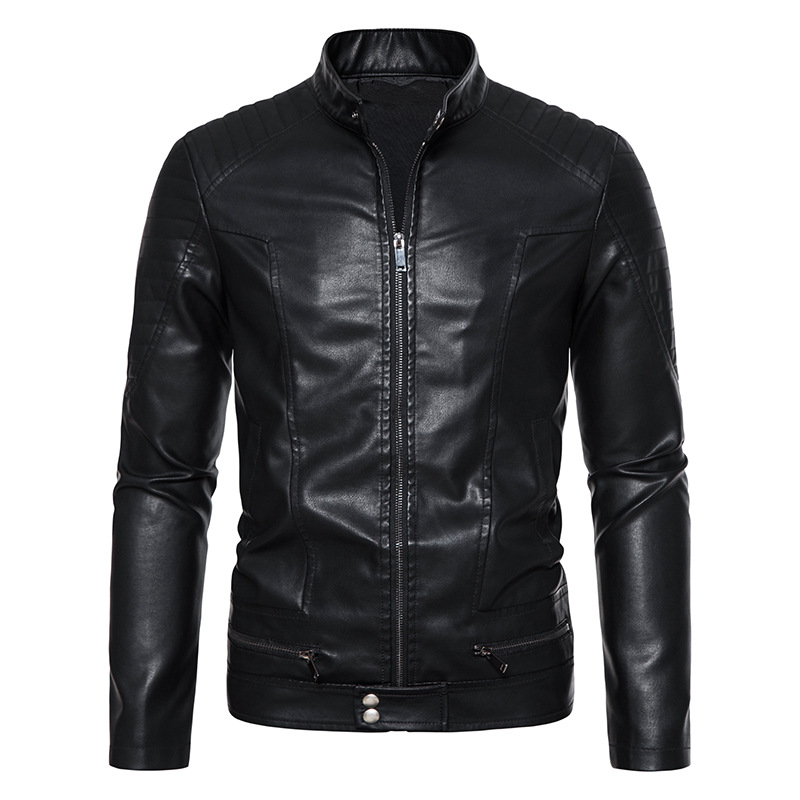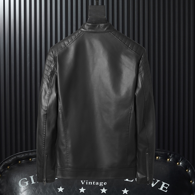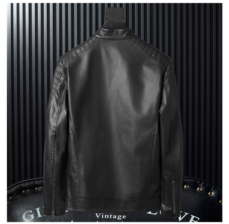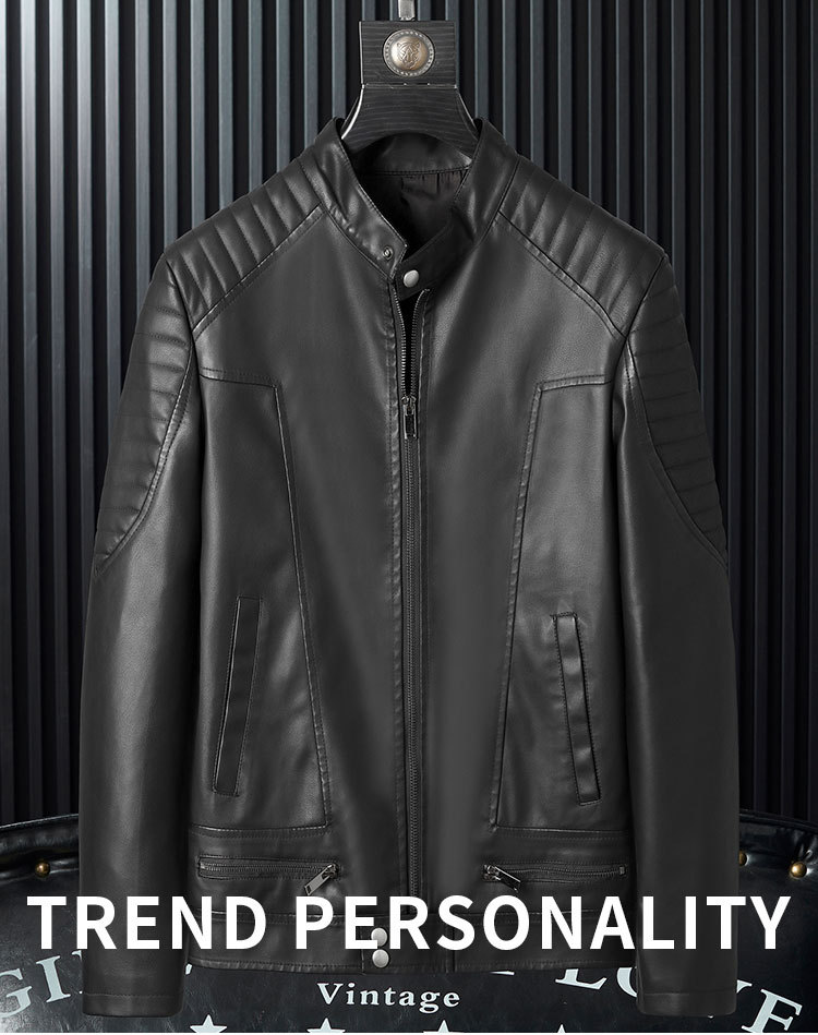 Mens PU Leather Jacket With Zipper Details