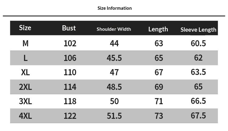 Sizes: M, L, XL, XXL, XXXL, 4XL