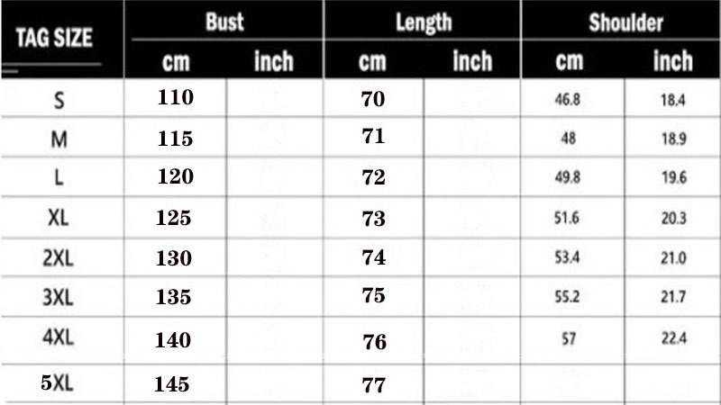 Size: S,M,L,XL,XXL,3XL,4XL,5XL