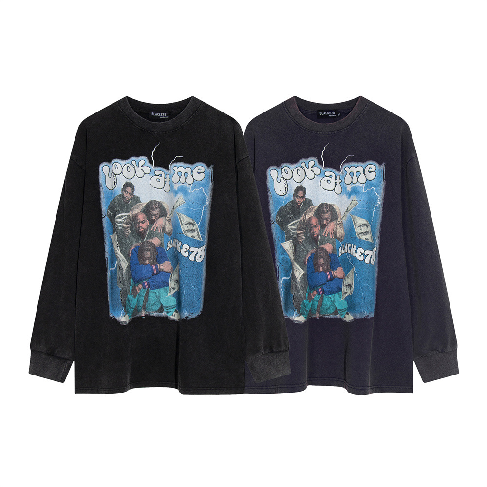 Men's Punk Wash Pure Cotton Long-t-shirt Ins Street